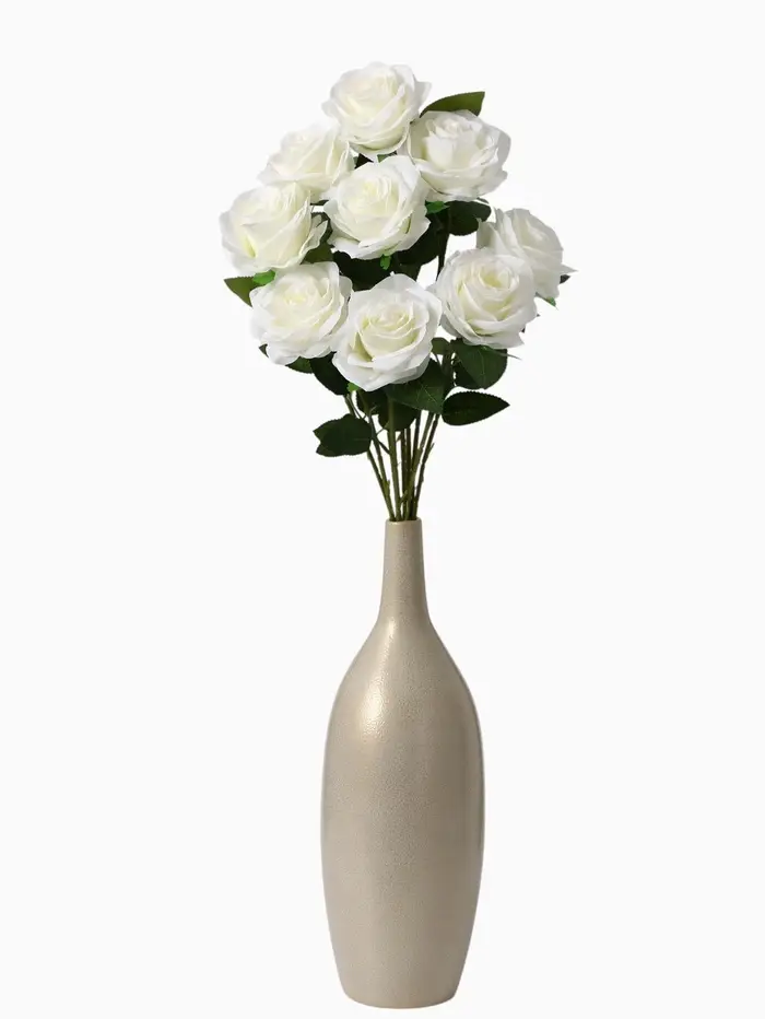 Белые искусственные розы «Глория» — это отличный выбор для тех, кто ценит эстетику и практичность. Они станут прекрасным подарком для близких или дополнением к вашему интерьеру, создавая ощущение вечной весны в любое время года.