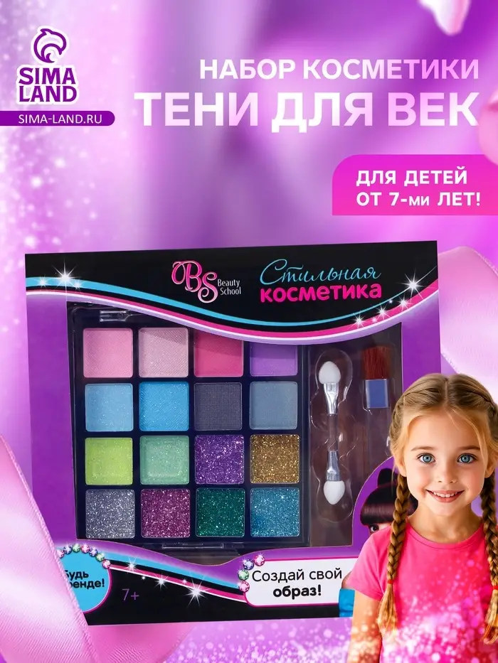 Тени для век для девочки, с кистью, аппликатором