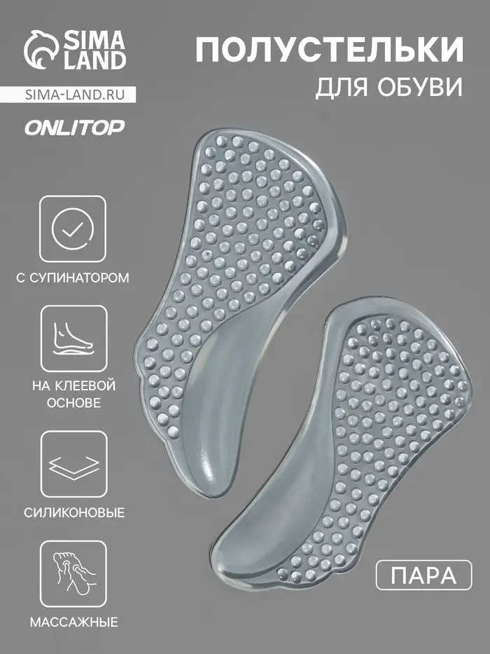 Полустельки для обуви, с супинатором, массажные, на клеевой основе, силиконовые, 12×6 см, пара, прозрачные