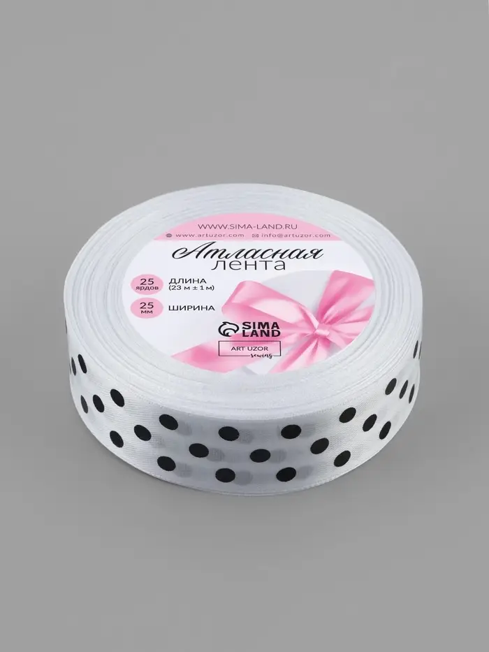 Лента атласная «Горох», 25 мм, 23±1 м, белая №001