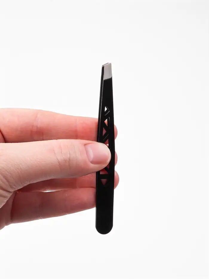 Черный цвет придаёт пинцету стильный и современный вид, а его лёгкий вес и эргономичная форма обеспечивают удобство использования. Пинцет не скользит в руках благодаря оптимальной конструкции, что позволяет вам создавать аккуратную форму бровей с минимальными усилиями.