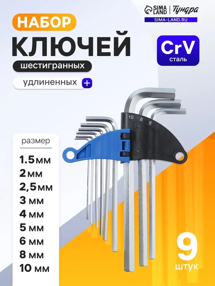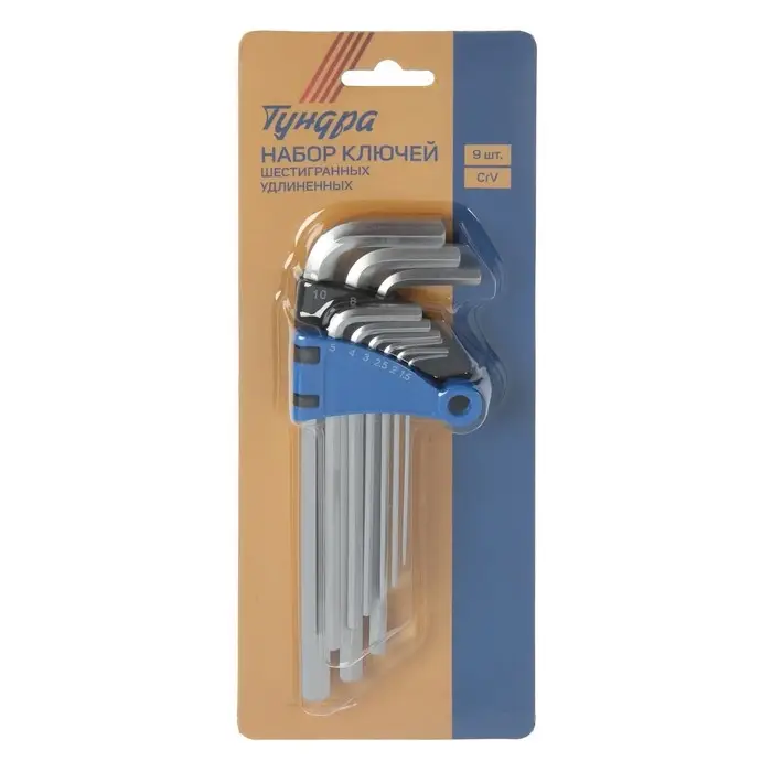 Набор ключей шестигранных ТУНДРА, удлиненных, CrV, 1.5 - 10 мм, 9 шт.