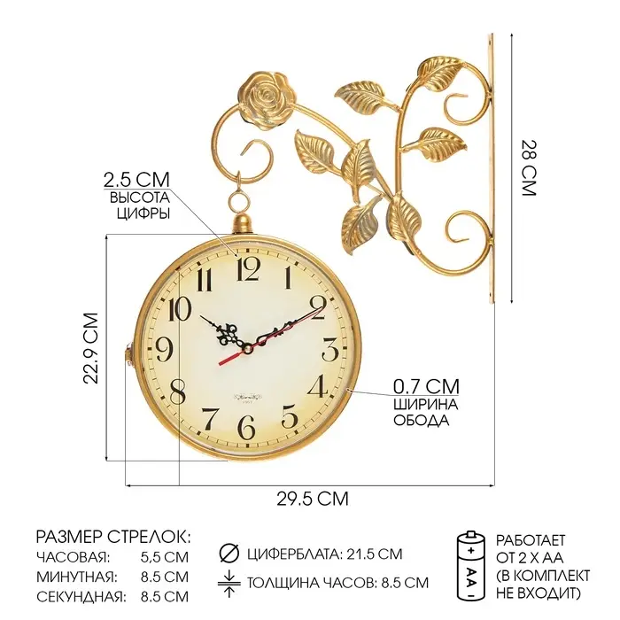 Часы настенные интерьерные «Флюгер», двусторонние, на подвесе, бесшумные, плавный ход, 48×32 см, циферблат d=19 см, от батарейки 1×АА