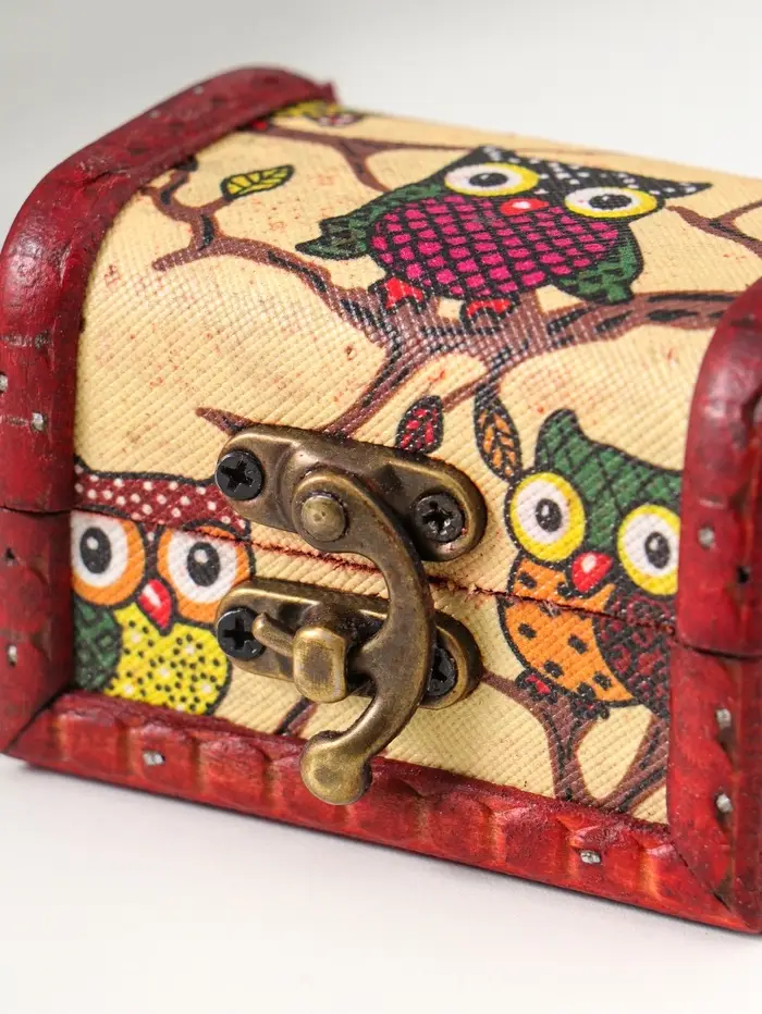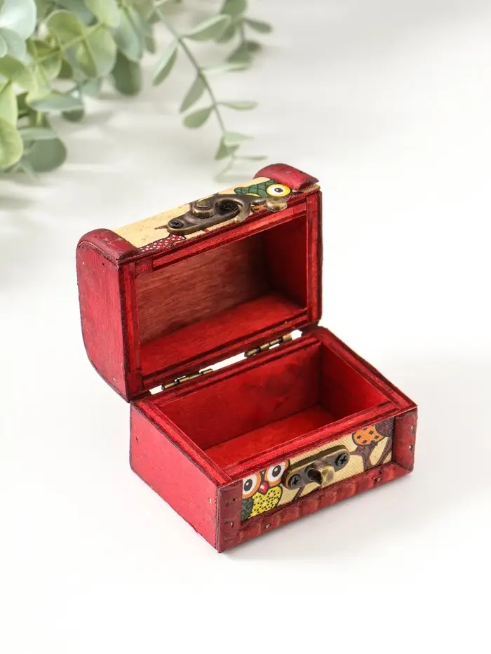 Этот деревянный сундучок с совятами — уютное и надёжное хранилище для ваших драгоценностей. Компактный размер делает его идеальным спутником на туалетном столике или в дорожной сумке. Замочек надёжно сохранит ваши секреты, а тёплое дерево и милые птички создают атмосферу домашнего уюта.