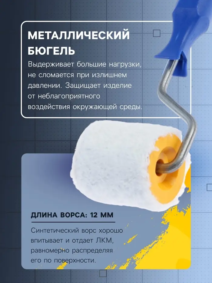 Мини-валик ТУНДРА, микрофибра, 60 мм, рукоятка d=6 мм, d=15 мм, ворс 9 мм