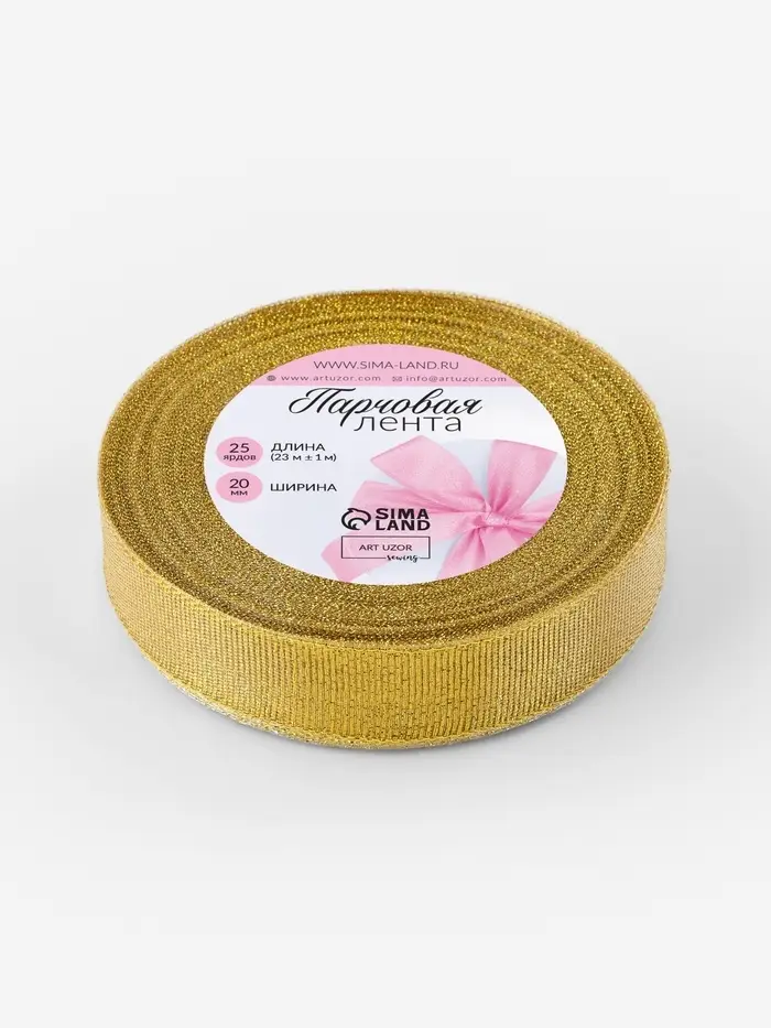 Лента парчовая, 20 мм, 23±1 м, цвет золотой