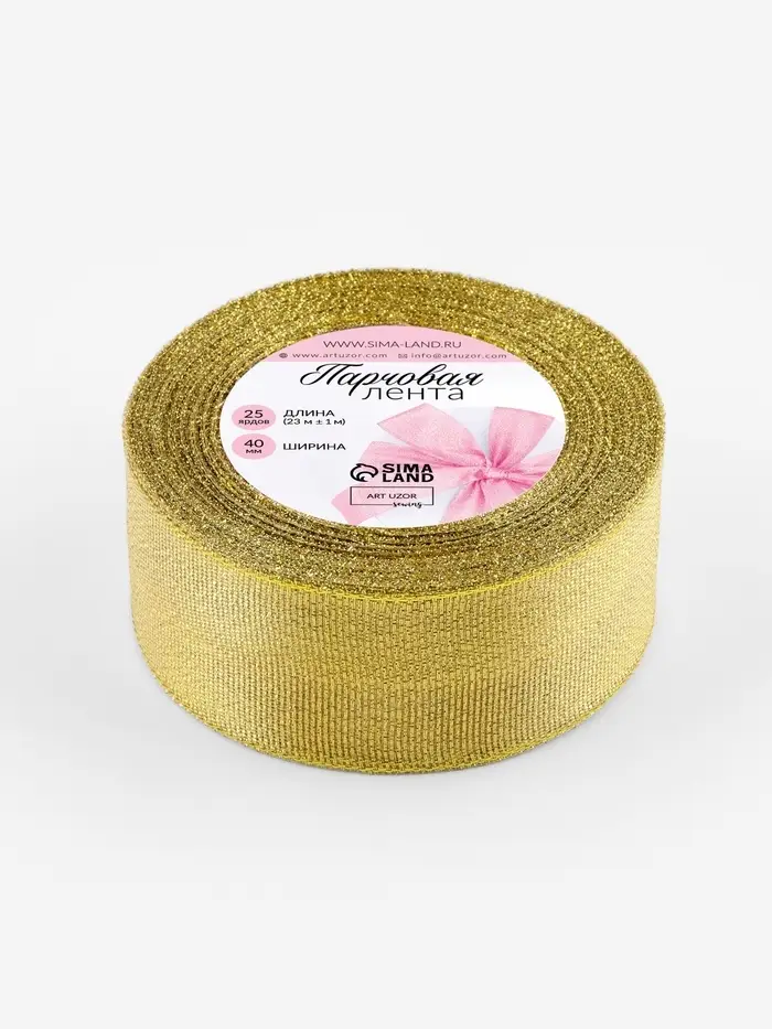 Золотая парчовая лента — праздничный декор с благородным блеском для упаковки подарков и украшения интерьера. Плотный полиэстер с металлизированным покрытием не выцветает и не теряет форму — банты и гирлянды сохранят вид до конца новогодних каникул. Широкая 40-миллиметровая лента эффектно смотрится на крупных коробках, шторах и рождественских венках.