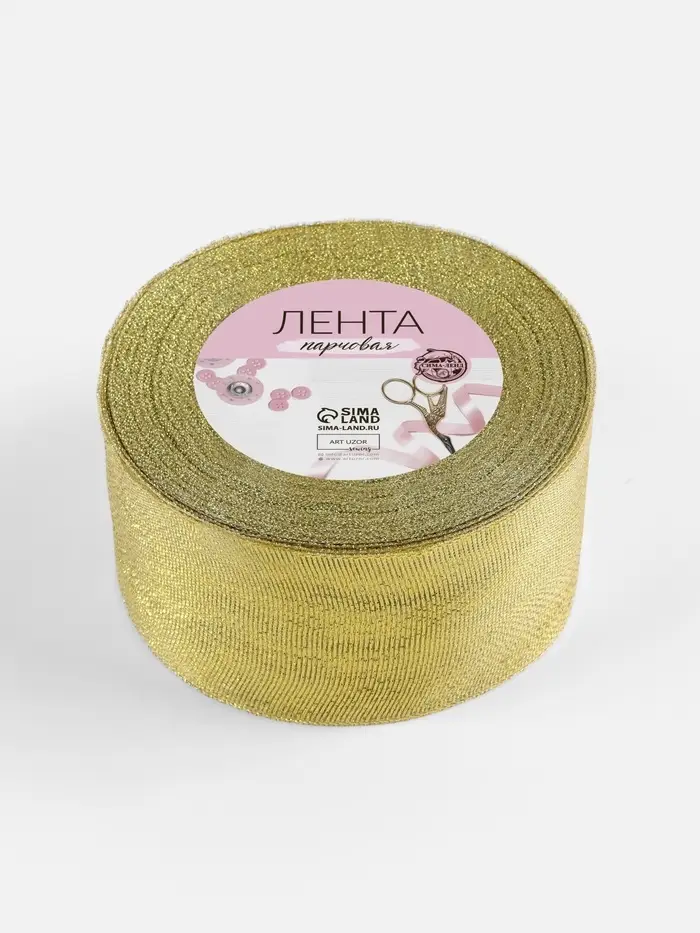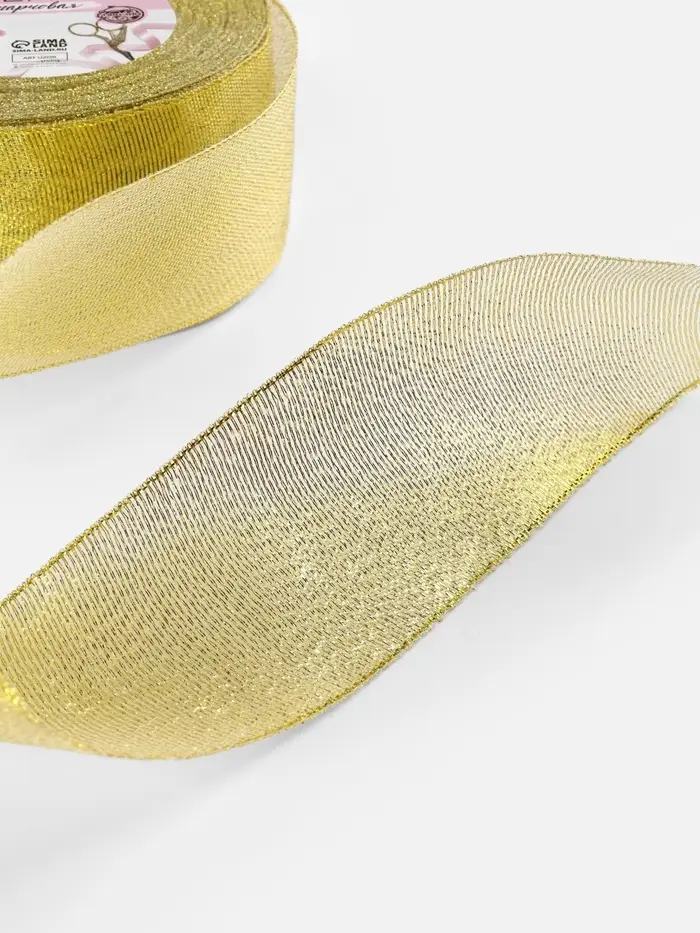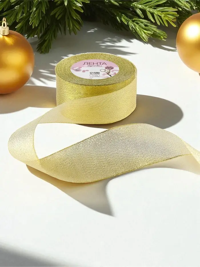 Широкая золотая парчовая лента — идеальный выбор для роскошного декора и упаковки подарков. Благодаря благородному металлическому блеску и увеличенной ширине 50 мм она создаёт эффект дорогой отделки. Подходит для оформления новогодних интерьеров, свадебных аксессуаров и премиум упаковки.