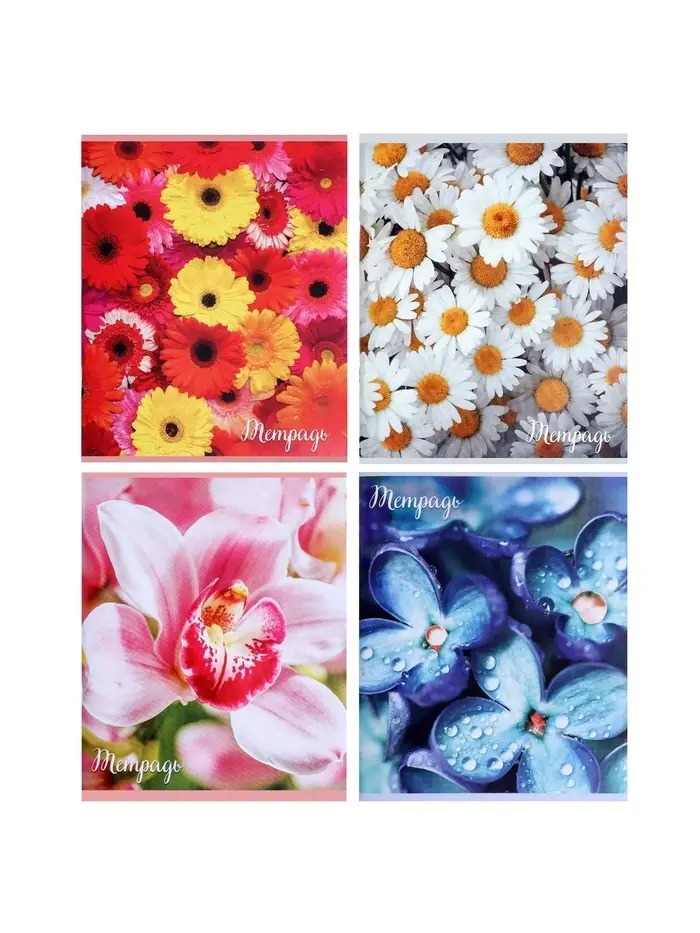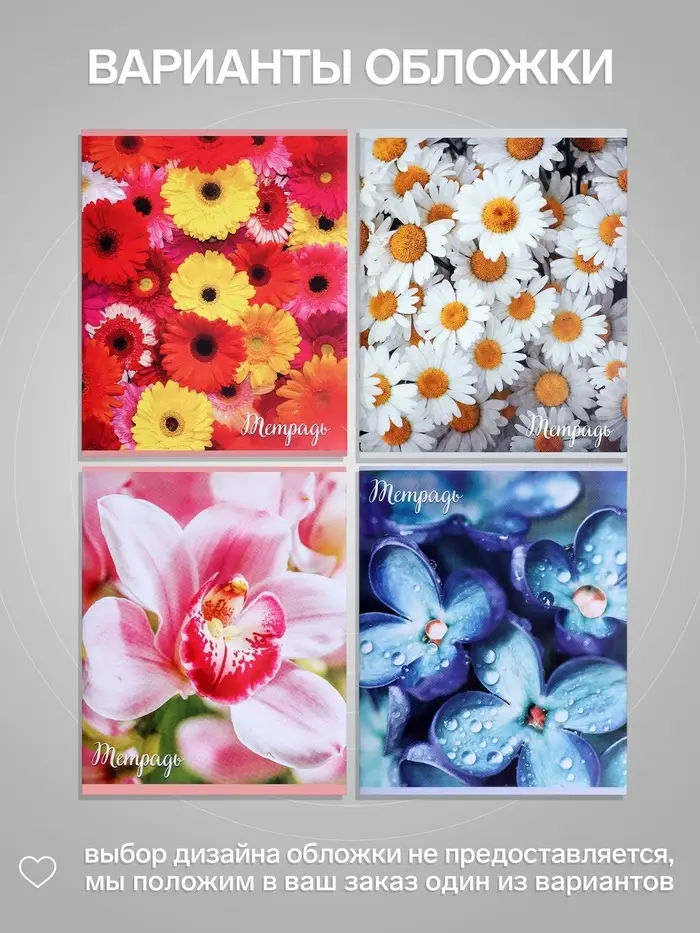 Тетрадь 96 листов в клетку «Цветы», серые листы, МИКС