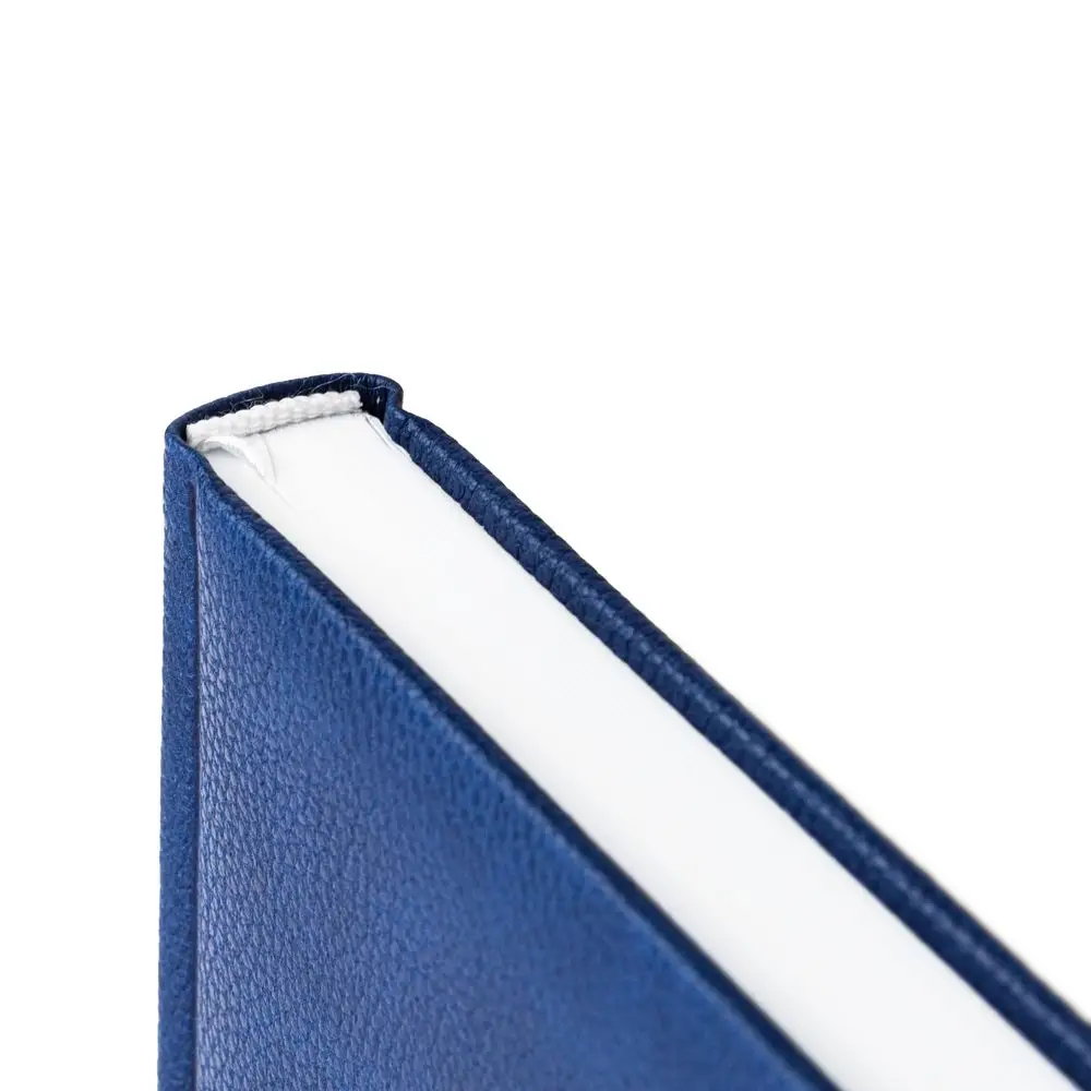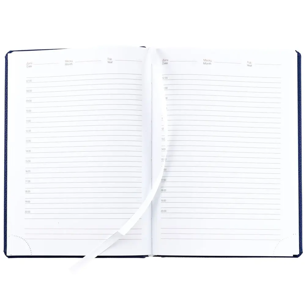Ежедневник в твердой обложке c поролоном, выполнен из материала La Fite, синий НН, дополнен ляссе белого цвета.
