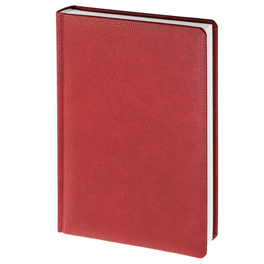 Ежедневник в твердой обложке c поролоном, выполнен из материала La Fite, красный РР, дополнен ляссе белого цвета.