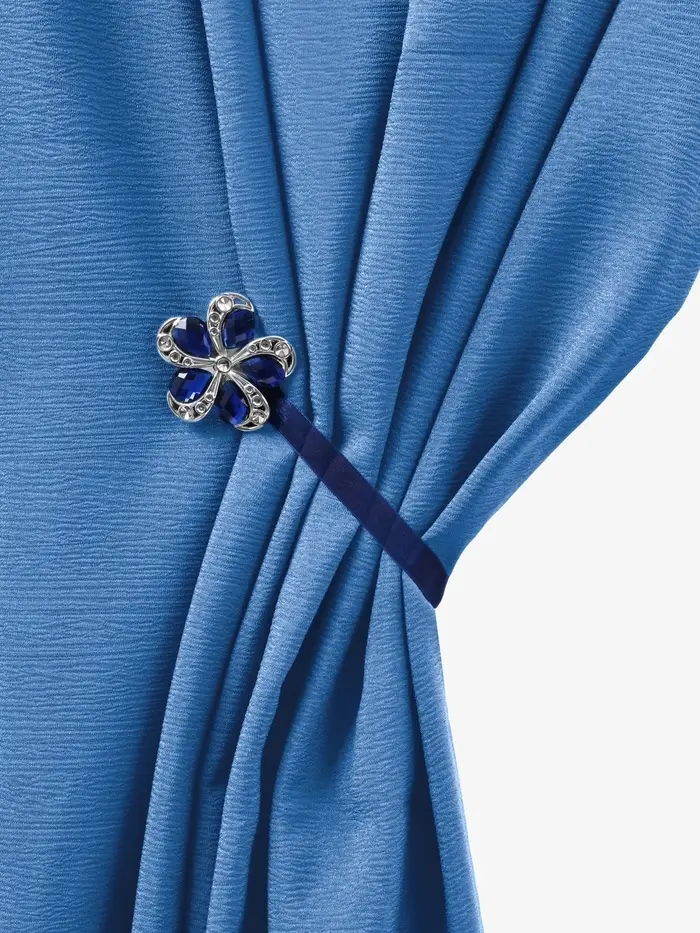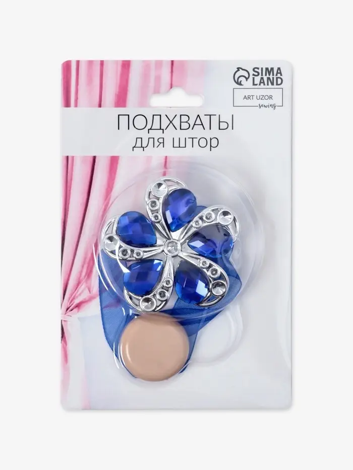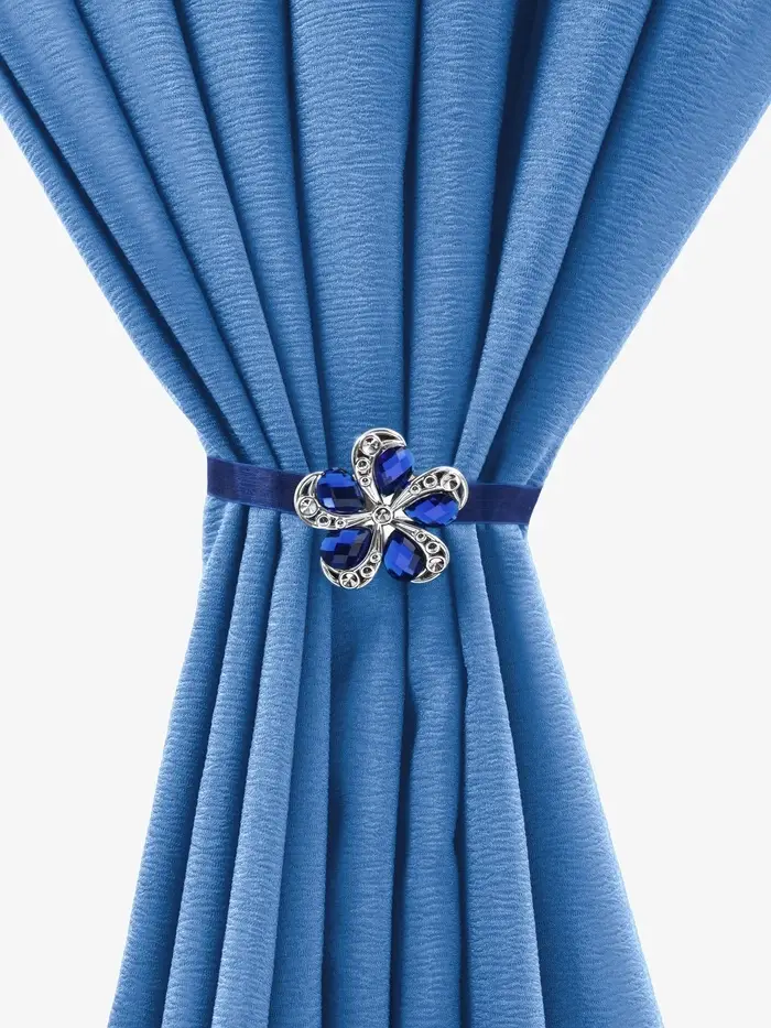Подхват для штор на ленте с цветочной вставкой — это яркий и практичный аксессуар, который придаёт оконному пространству ухоженный вид. Синий глянцевый оттенок создаёт свежее впечатление, а двухцветная фактура добавляет изделию объёма и выразительности. Фигурная форма напоминает ромашку, что делает его лёгким декоративным акцентом в интерьере.