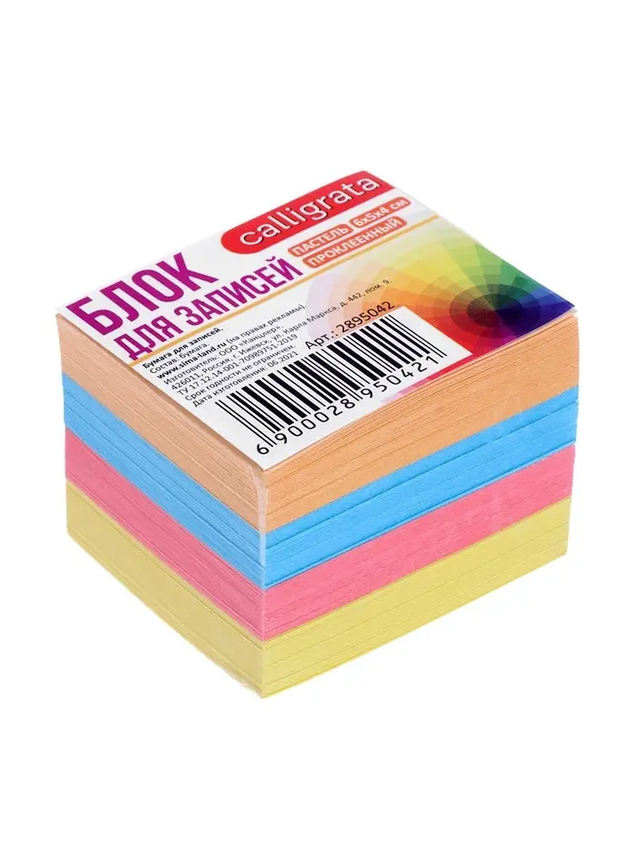 Цветной блок бумаги для записей Calligrata отличается своей универсальностью и надежностью. Идеален для офиса и дома. Компактные размеры 60 х 50 мм позволяют легко разместить его на рабочем столе. Бумага плотностью 80 г/м² обеспечивает комфортное письмо и работы с документами. Проклеенный блок означает, что листы легко отрываются и не теряются. Цветовая гамма в пастельных тонах делает записи более выразительными.