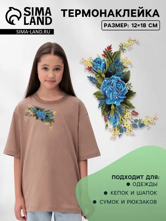 Термотрансфер с цветочным принтом от бренда «Арт Узор» – простой способ обновить любимые вещи. Наклейка размером 12×18 см с нежными голубыми и зелеными оттенками идеально подходит для украшения одежды, сумок или текстиля. Легко переносится на ткань утюгом, создавая стильный акцент за считанные минуты.