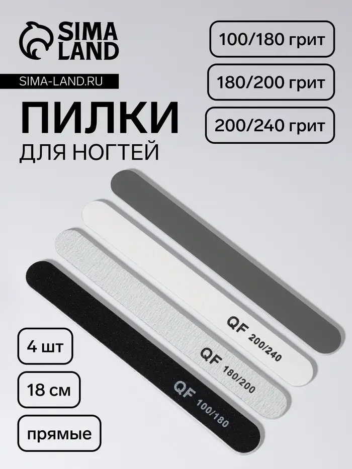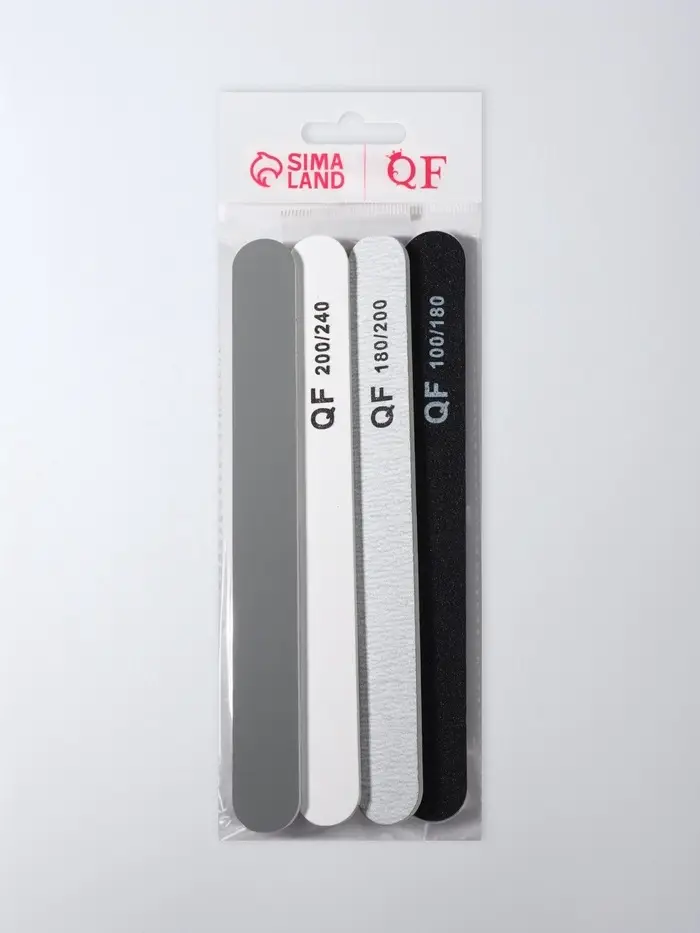 Набор пилок для ногтей, прямые, 100/180, 180/200, 200/240 грит, 18 см, 4 шт.