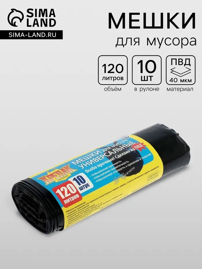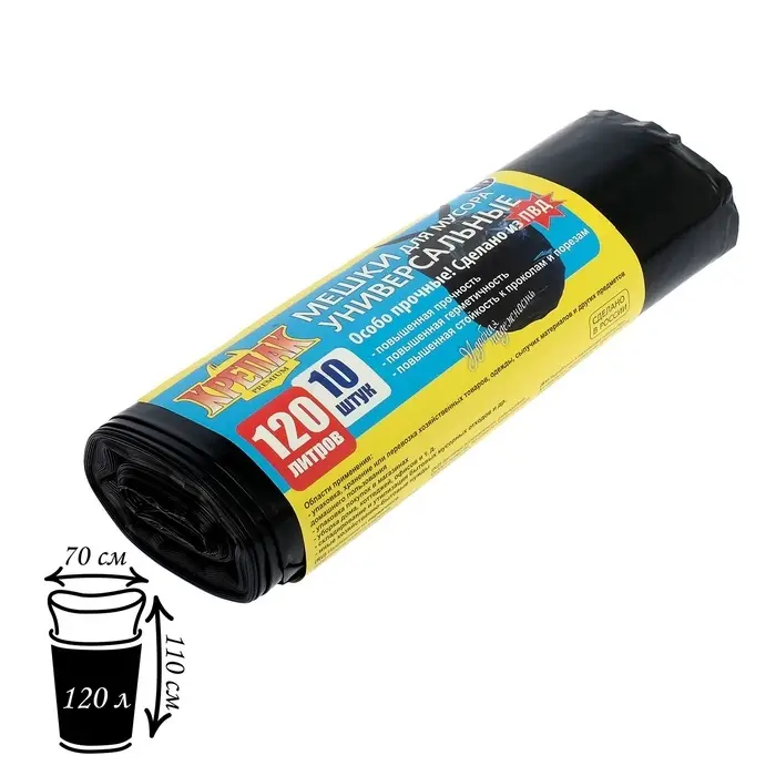 Мешки для мусора «КРЕПАК», 120 л, ПВД, 40 мкм, 70×110 см, 10 шт., чёрные