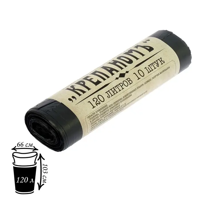 Мешки для мусора «КРЕПАНОМЪ», 120 л, ПНД, 12 мкм, 66×103 см, 10 шт., чёрные