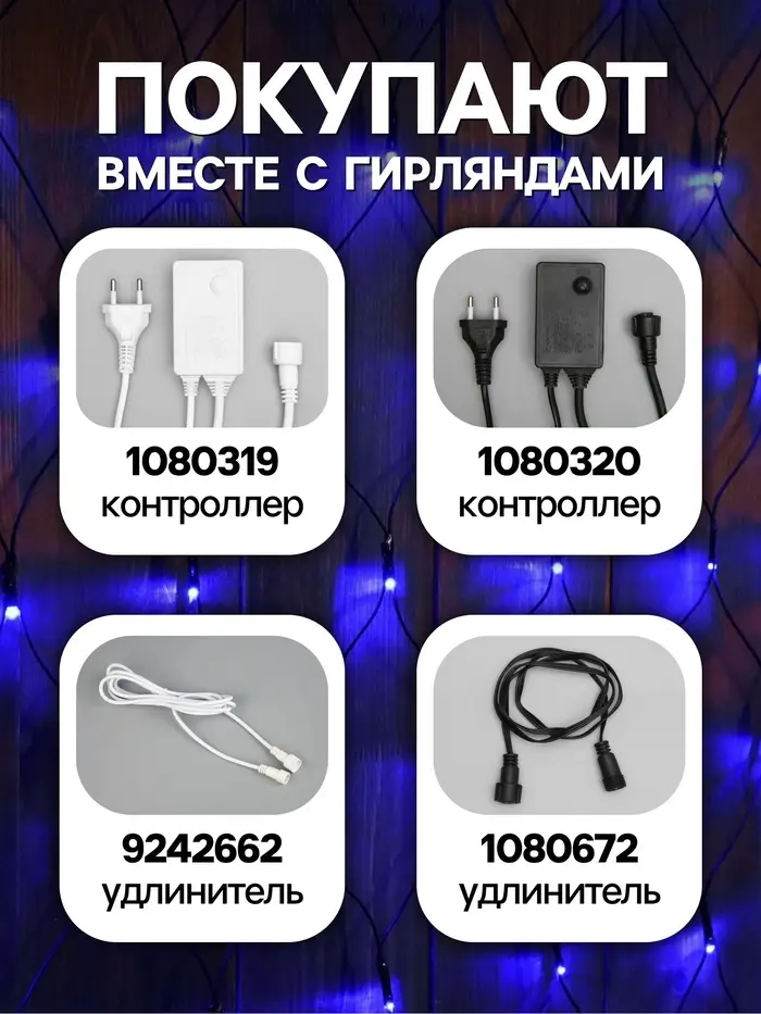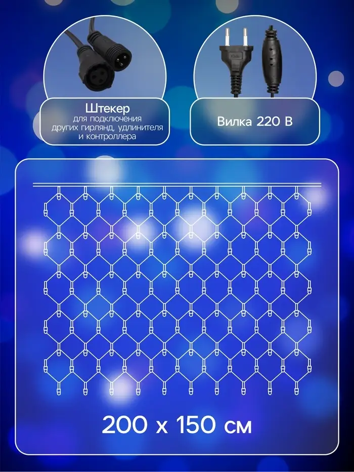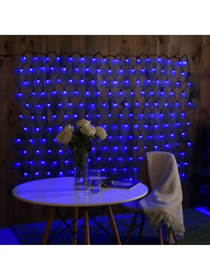 Гирлянда «Сеть» 2×1.5 м, IP44, УМС, тёмная нить, 192 LED, свечение синее, 220 В