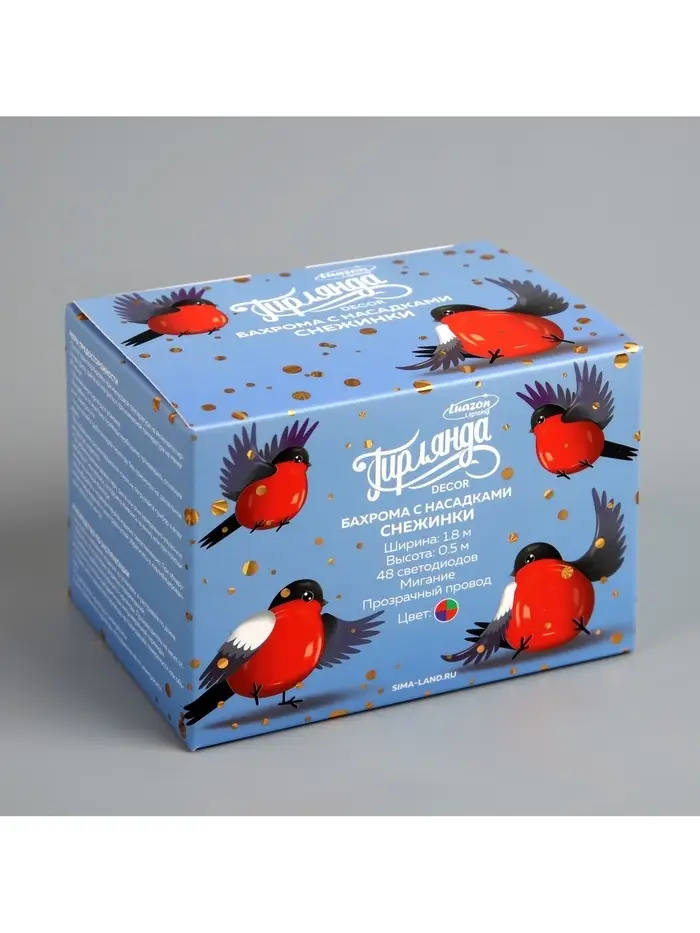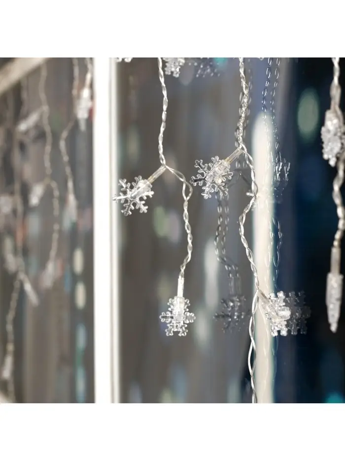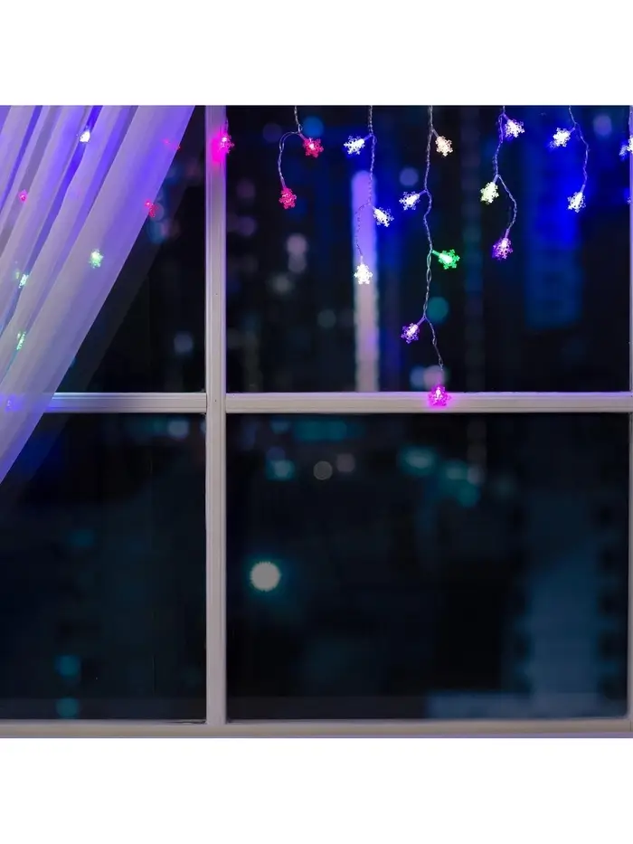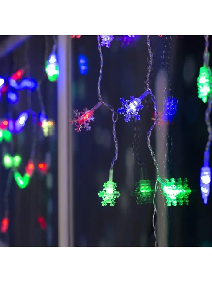 Гирлянда «Бахрома» 1.8×0.5 м с насадками «Снежинки», IP20, прозрачная нить, 48 LED, свечение мульти (RG/RB), мигание, 220 В