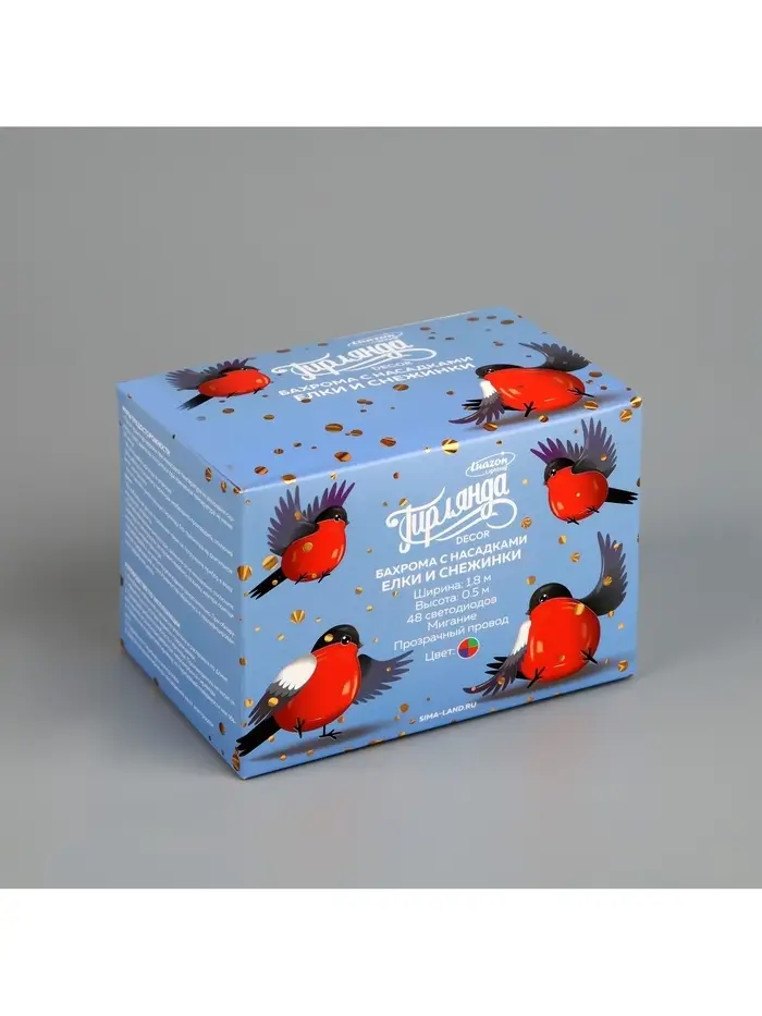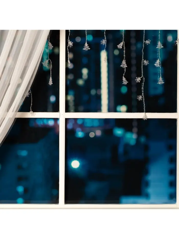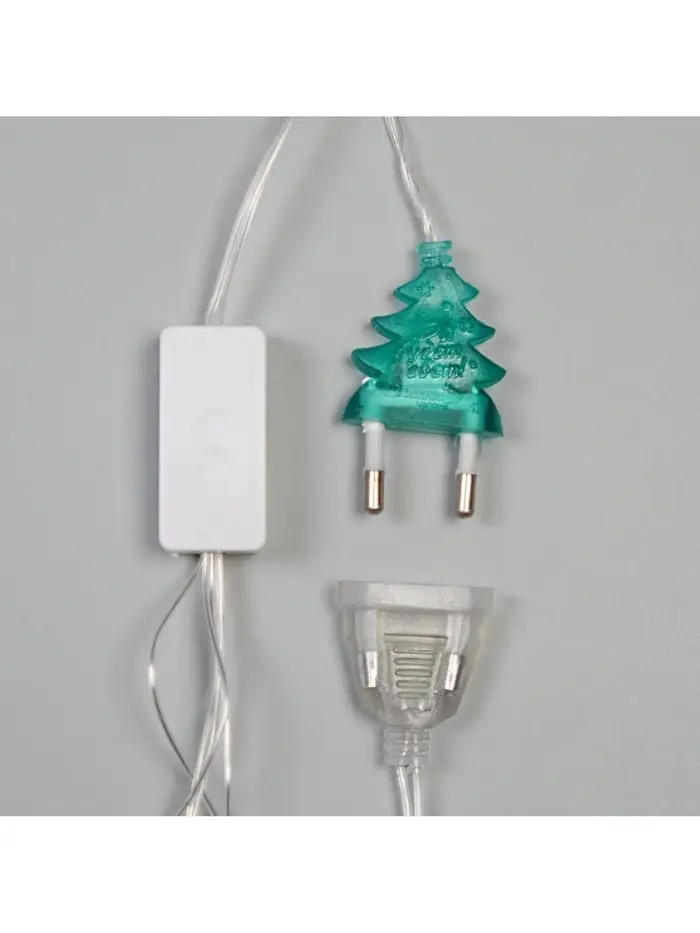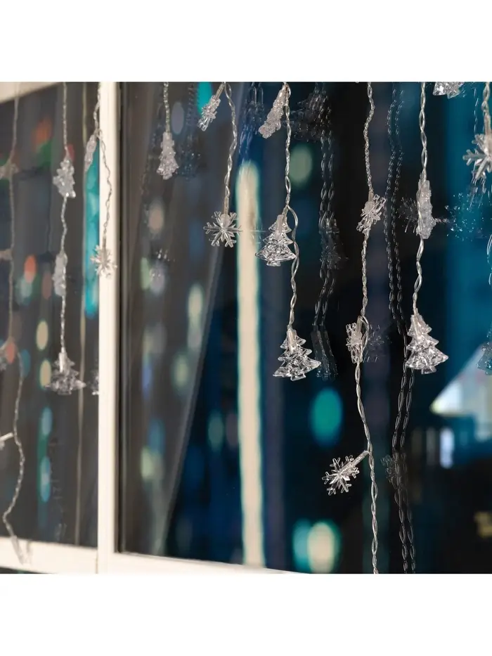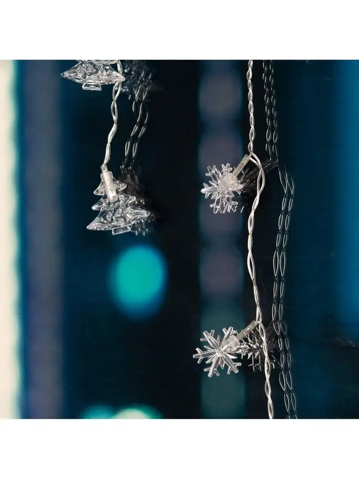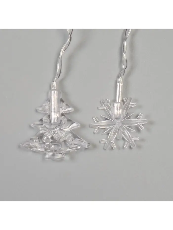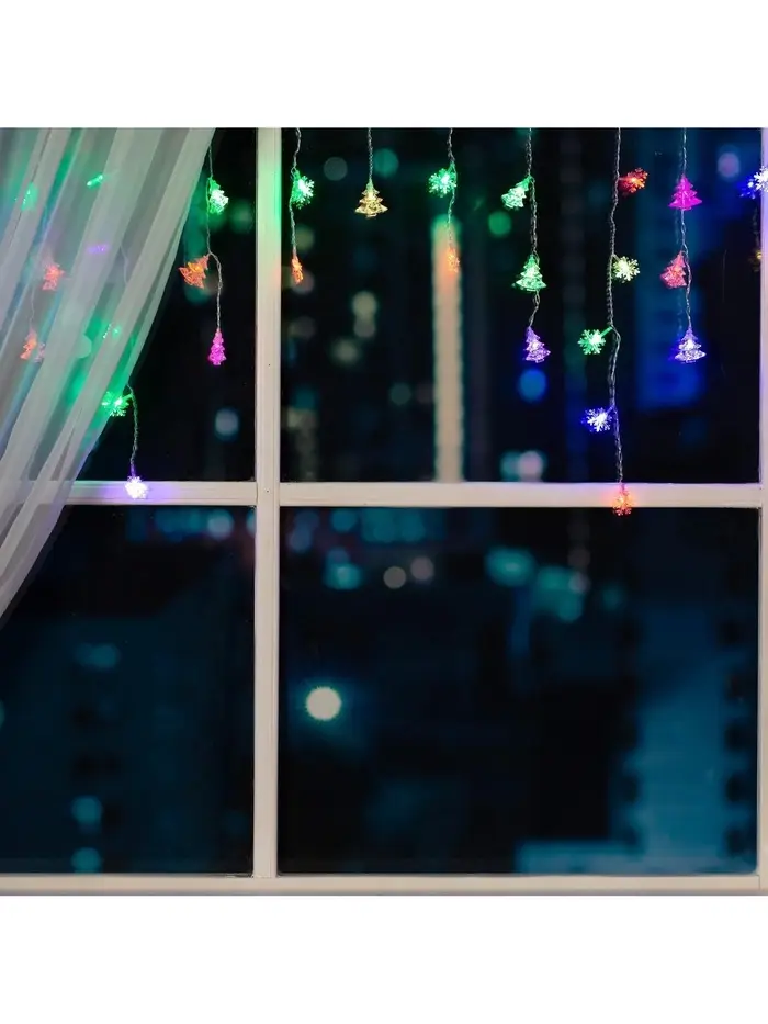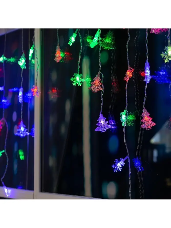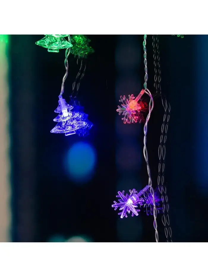 Гирлянда «Бахрома» 1.8×0.5 м с насадками «Ёлки и снежинки», IP20, прозрачная нить, 48 LED, свечение мульти (RG/RB), мигание, 220 В
