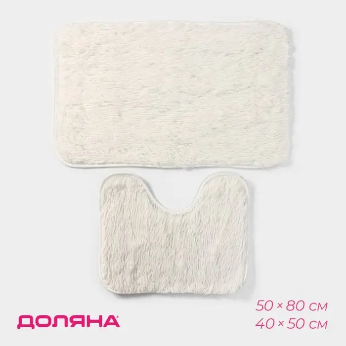 Коврики для ванной и туалета Доляна «Пушистик», 2 шт.: 40×50 см, 50×80 см, цвет белый