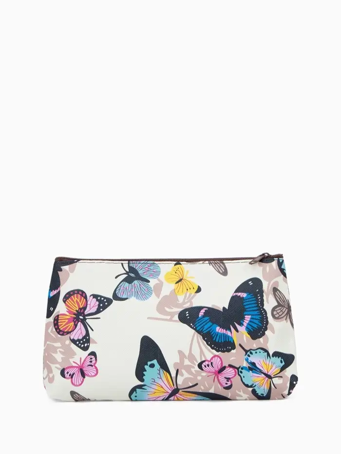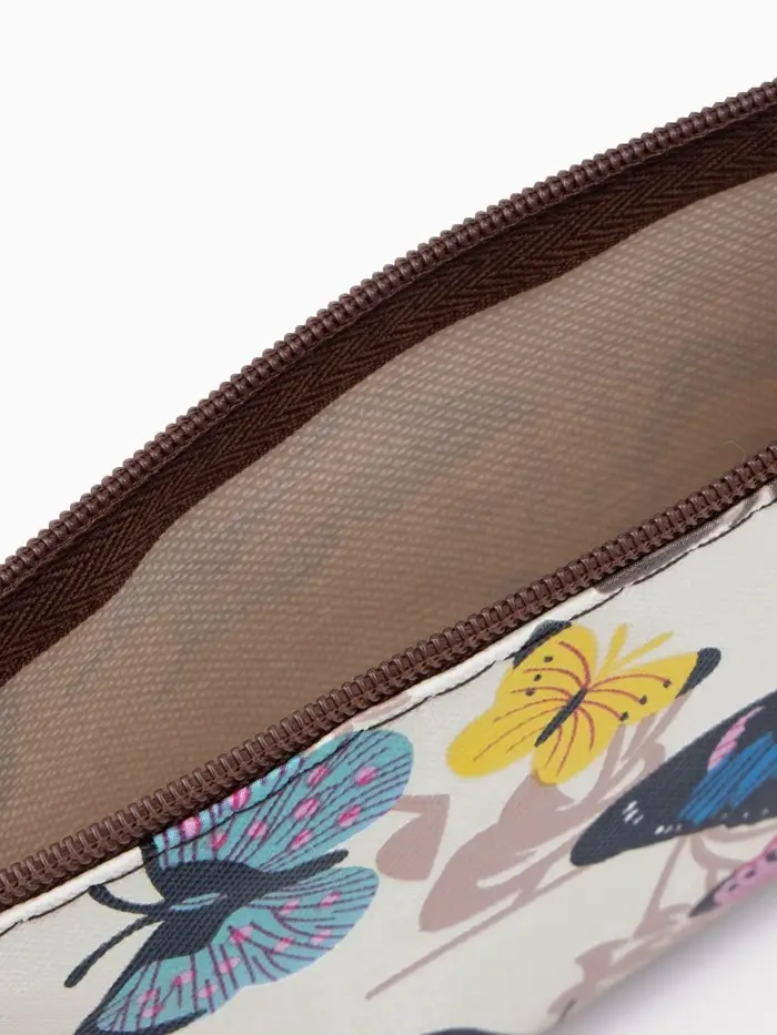 Косметичка - пенал на молнии, плоская, маленькая, с принтом, белая=
