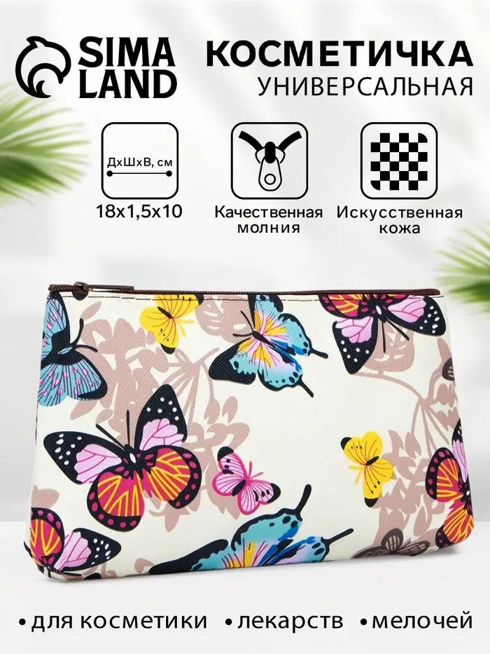 Косметичка - пенал на молнии, плоская, с ярким принтом, разноцветная