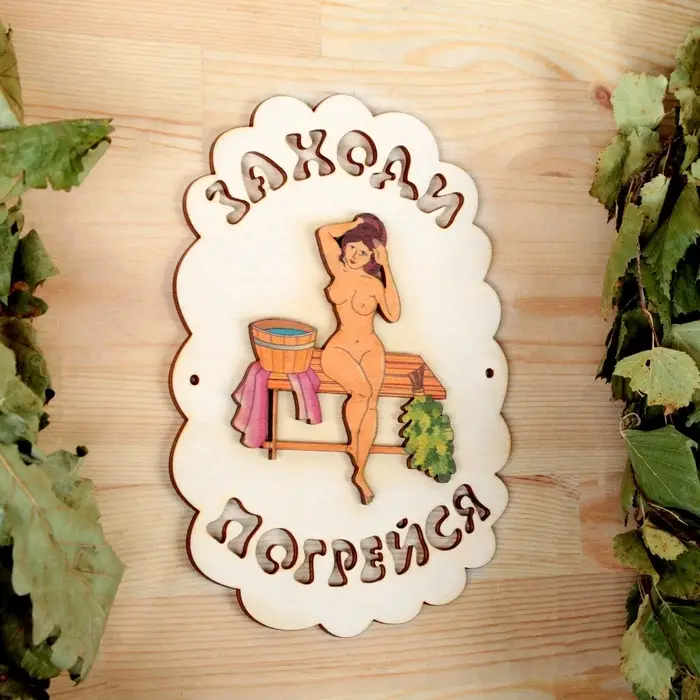 Таблички в бане информируют гостей о правилах посещения парной, помогают с навигацией и просто украшают интерьер. Такой аксессуар из дерева не выделяет вредных веществ, он безопасен и долговечен.