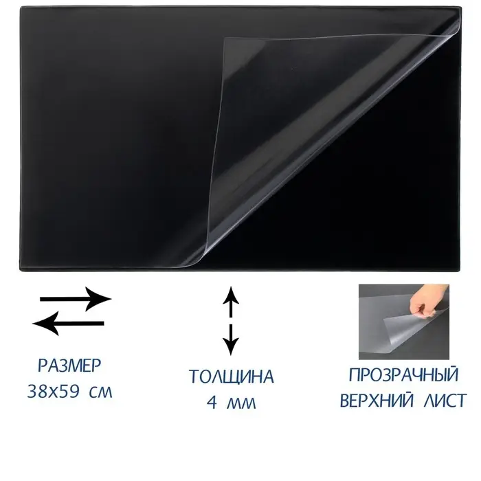 Настольное покрытие Calligrata, 38×59 см, черное, с прозрачным клапаном