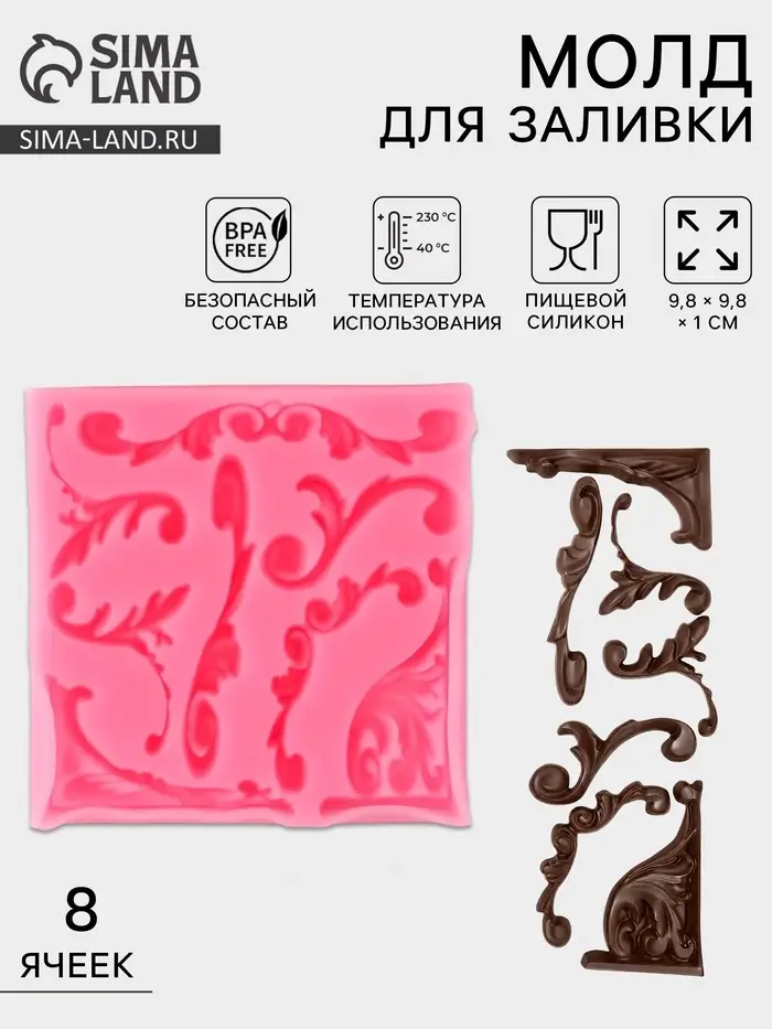 - 8 одинаковых ячеек — удобно создавать непрерывный бордюр или запас декора за один залив.