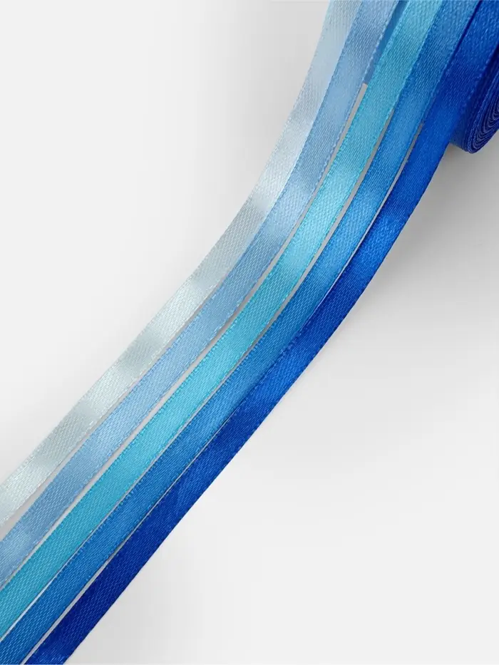 Привносите элегантность и универсальность в ваши проекты с синими атласными лентами. Этот комплект состоит из пяти атласных лент, которые идеально подойдут для различных творческих начинаний, от упаковки подарков до рукоделия. Полиэстеровая основа обеспечивает прочность и гладкость, а синяя и голубая цветовая палитра делает их подходящими для любого случая.