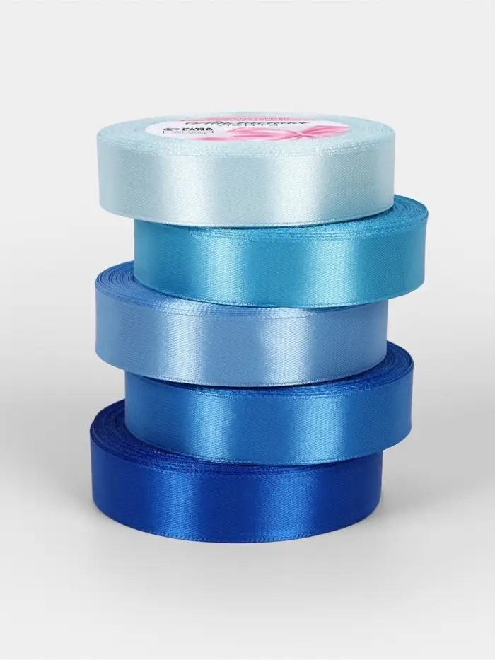 Атласная лента, набор 5 шт., 20 мм, 23±1 м, синяя, голубая