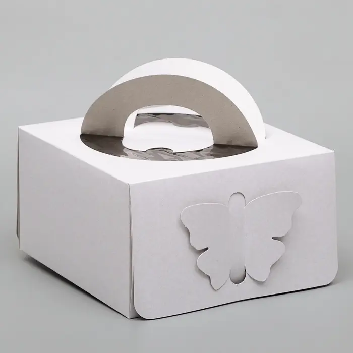 Коробка под торт без печати «Бабочка» 1 кг, белая, с ручками, 21×21×12 см