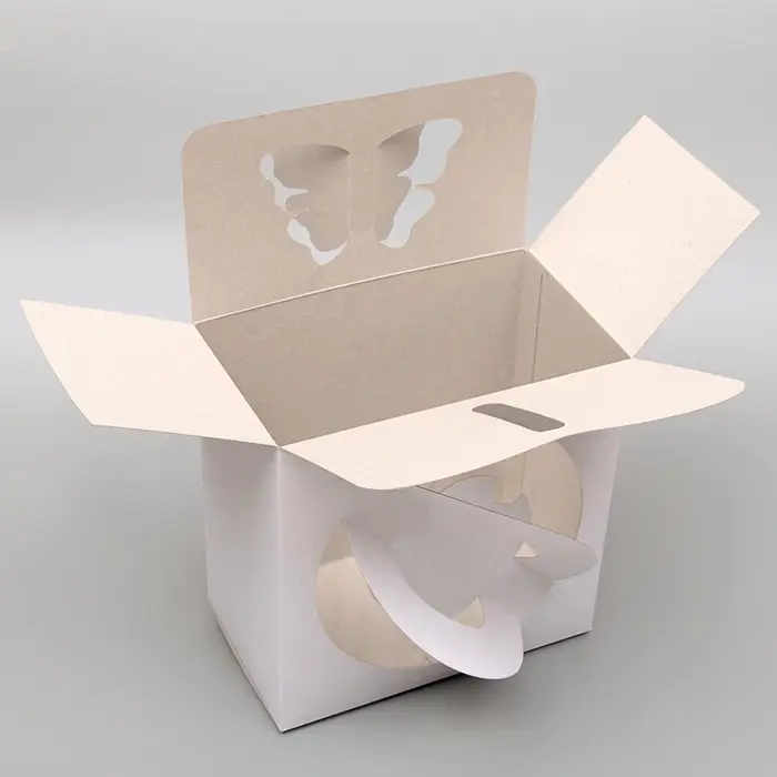 - Коробка без печати с рисунком «Бабочка»: Изображение выдавлено в картоне (тиснение), а не напечатано краской. Подходит для 14 февраля, 8 Марта, дня рождения и свадьбы. Белый фон не мешает, если добавить ленту или наклейку.