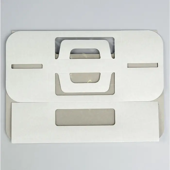 - Белая упаковка для десертов 420 г/м²: Очень плотный картон – коробка не гнётся под весом торта, не размокает от конденсата. Собирается без клея: просто сложить по сгибам.