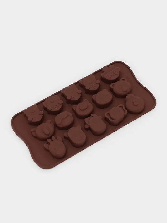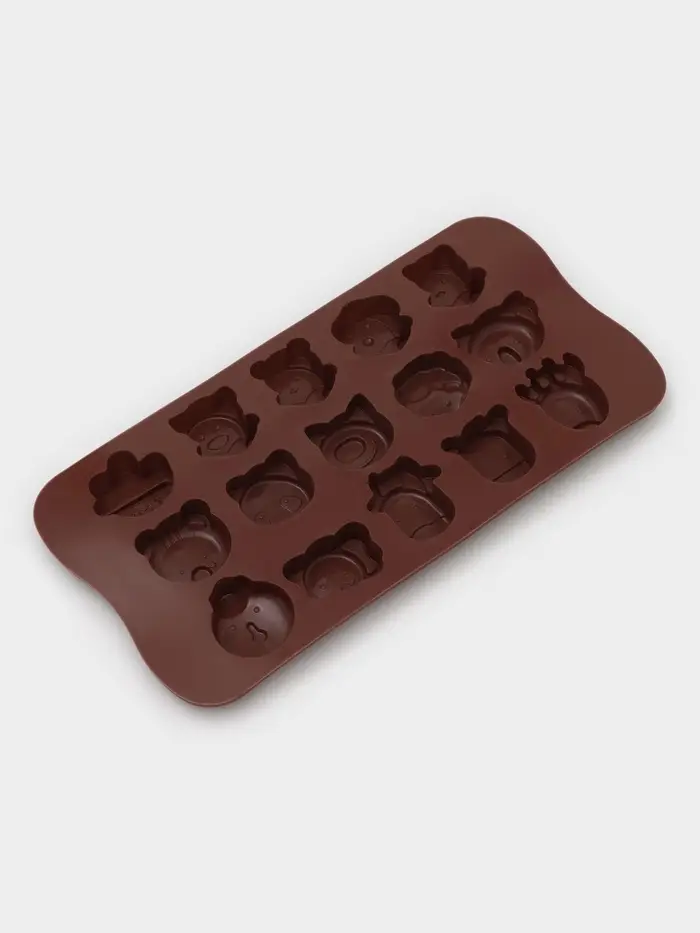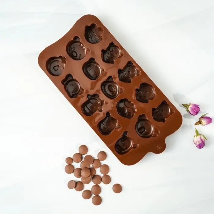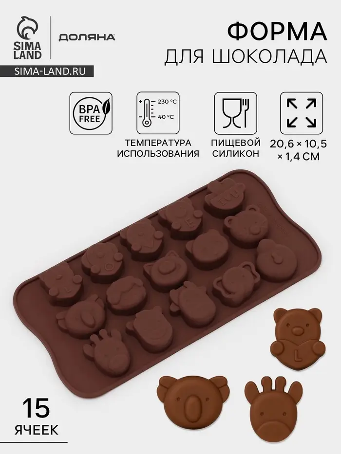 Форма для конфет и шоколада Доляна «Животные. Любовь», силикон, 20.6×10.5×1.4 см, 15 ячеек, коричневая