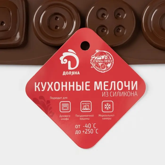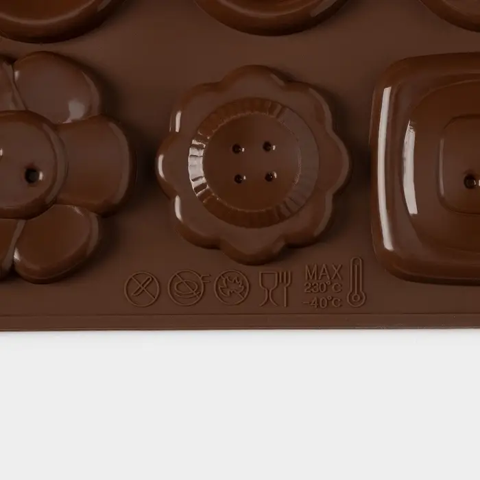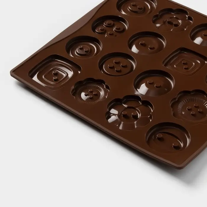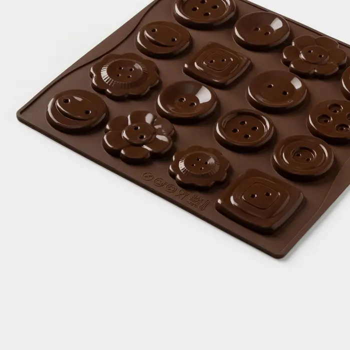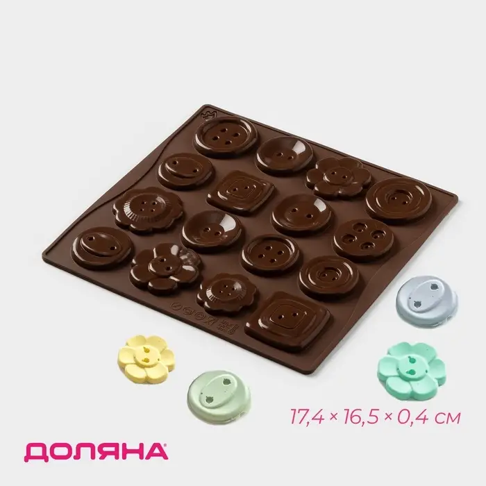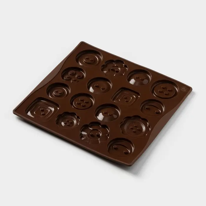 Форма для шоколада Доляна «Пуговки», силикон, 17.4×16.5×0.4 см, 16 ячеек (d=3 см), коричневая