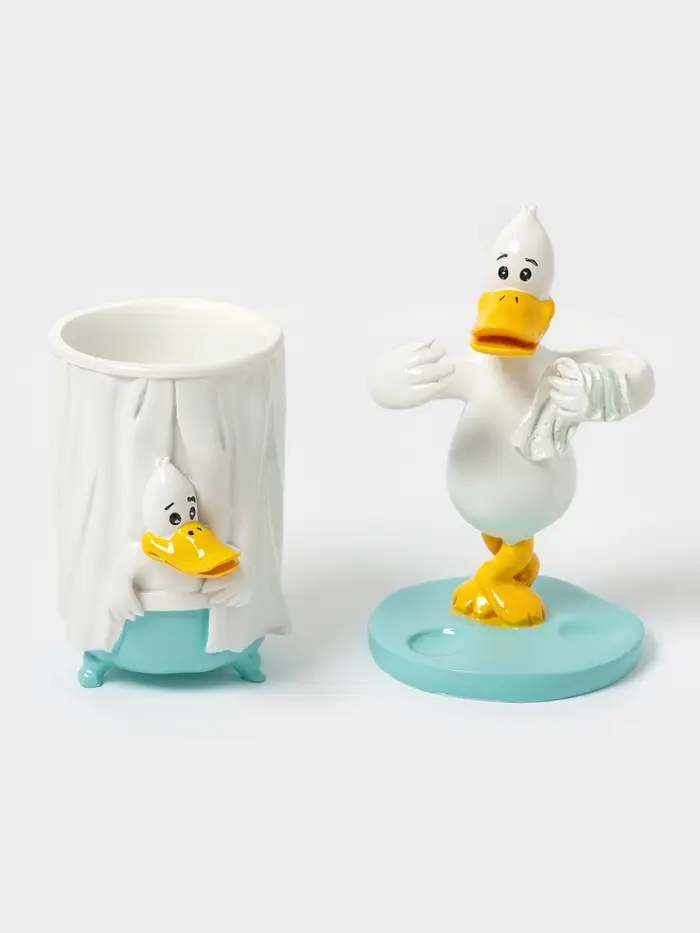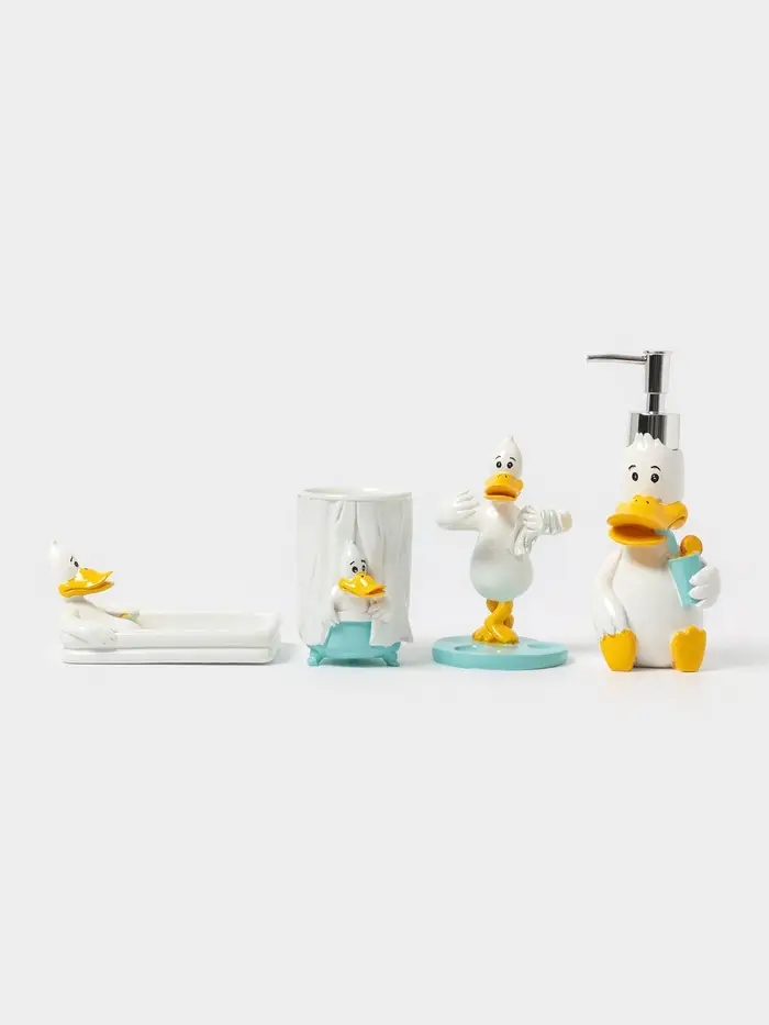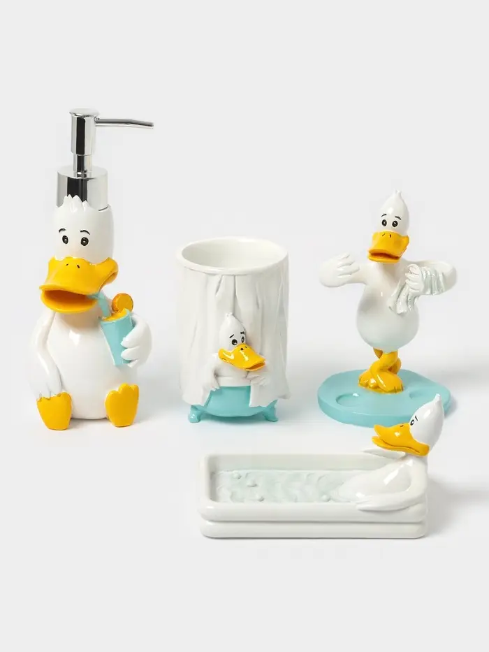 - Набор аксессуаров «Утиные истории» значительно облегчит хранение ванных принадлежностей.