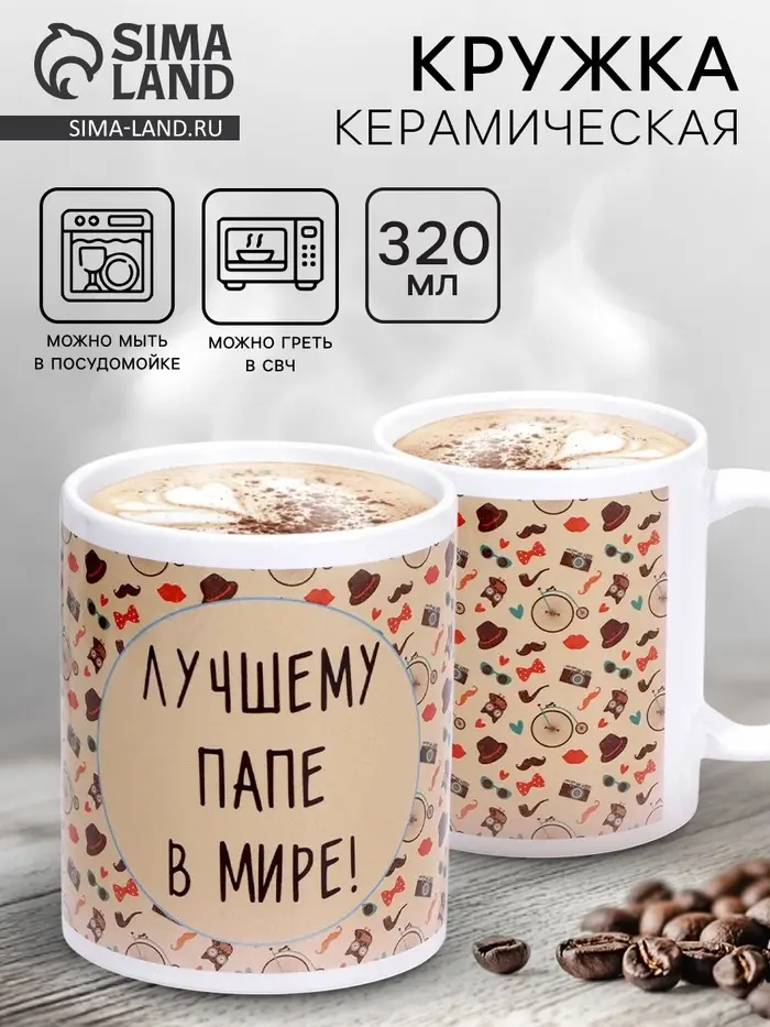 Керамическая кружка «Лучшему папе в мире» — сдержанное, но выразительное напоминание, сочетающее повседневную практичность. Подходит для утреннего кофе, вечернего чая или как символ внимания.