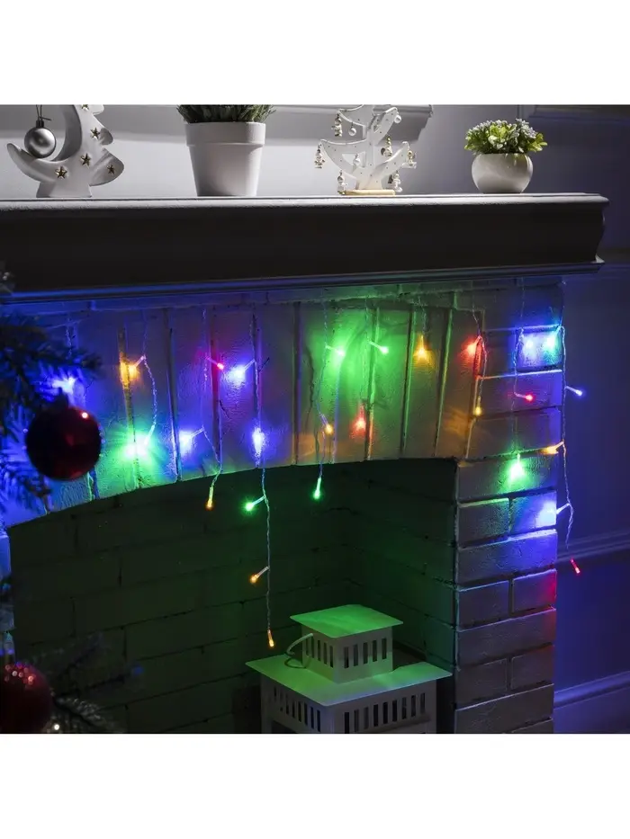 Гирлянда «Бахрома» 3×0.5 м, IP20, прозрачная нить, 80 LED, свечение мульти, 8 режимов, 220 В