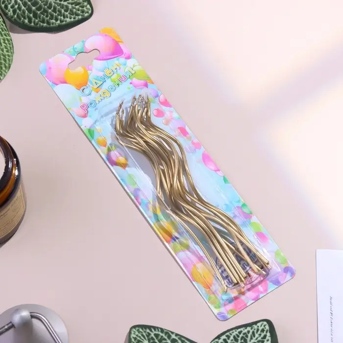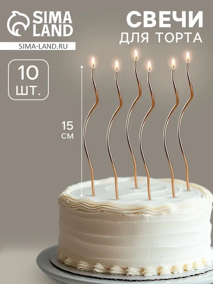 Свечи для торта витые «Серпантин», 10 шт., коктейльные, золотые, 15 см