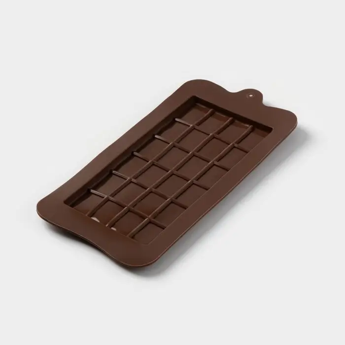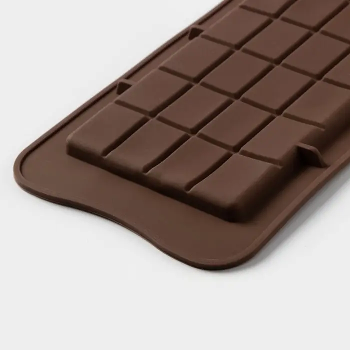 Форма для шоколада Доляна «Плитка», силикон, 22.5×10.5×0.9 см, 24 ячейки (2×2.5 см), коричневая