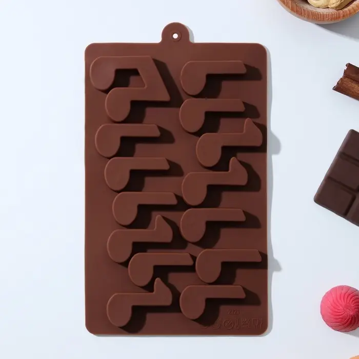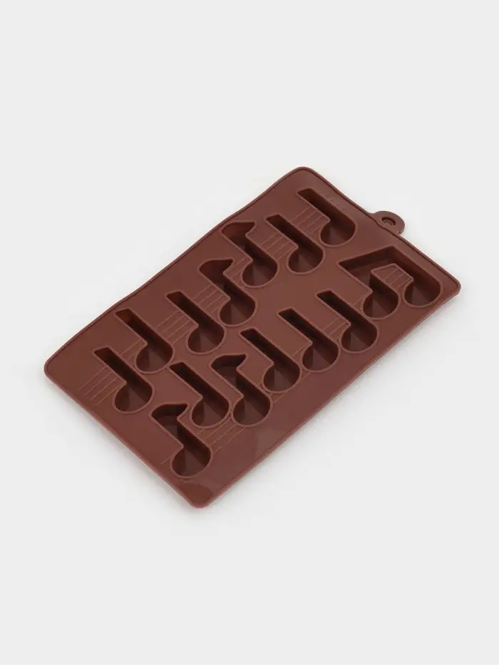 Силиконовая форма «Ноты» — выразительный и тематический выбор для тех, кто хочет добавить музыкального настроения в домашние сладости. Её 14 ячеек формируют фигурки в виде классических нот с чёткими контурами — идеально подходят для шоколада, марципана или желе. Коричневый силикон подчёркивает кондитерское назначение, а мягкая текстура материала обеспечивает аккуратное извлечение без повреждения деталей.