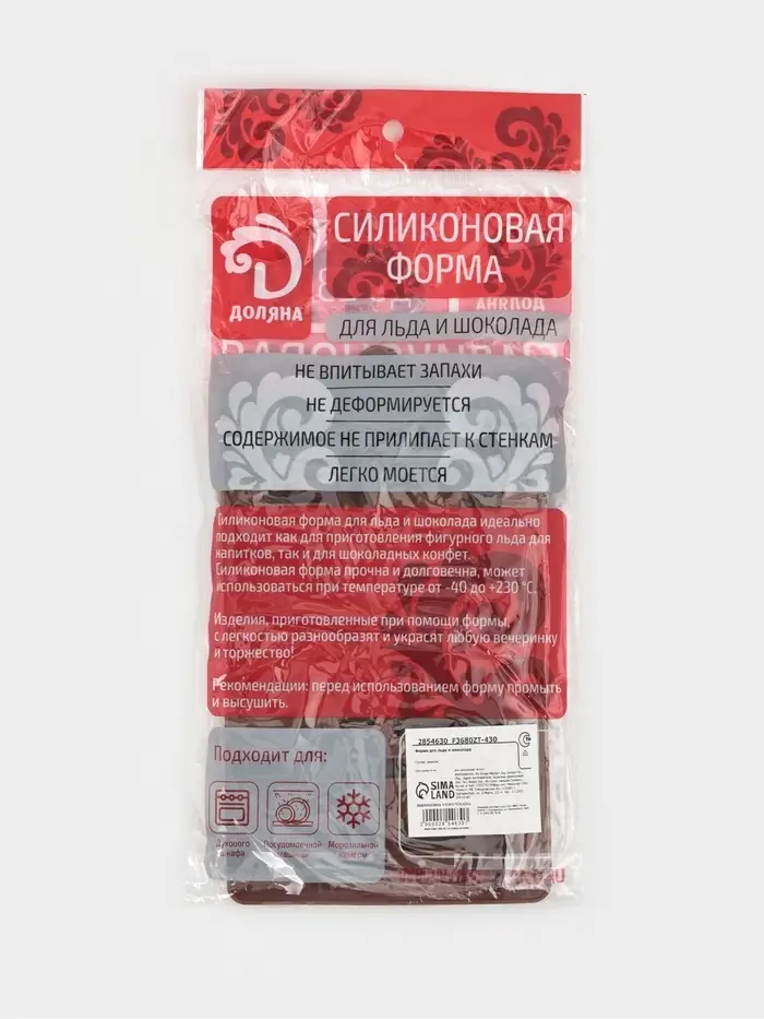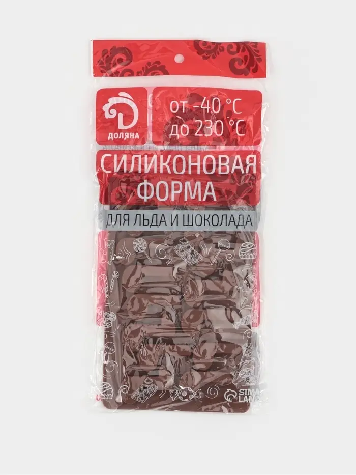 - Размер формы — 19,5×12 см; каждая ячейка — 4,2×2,2 см, удобна для самостоятельных конфет или декоративных элементов.