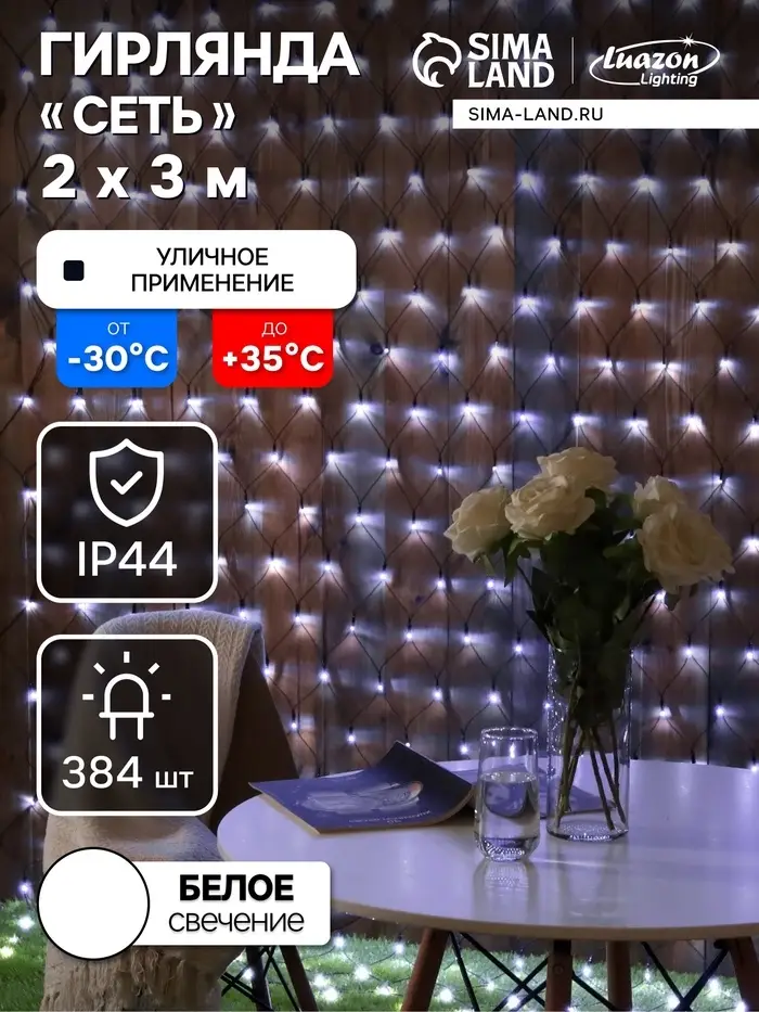 Гирлянда «Сеть» 2×3 м, IP44, УМС, тёмная нить, 384 LED, свечение белое, 220 В
