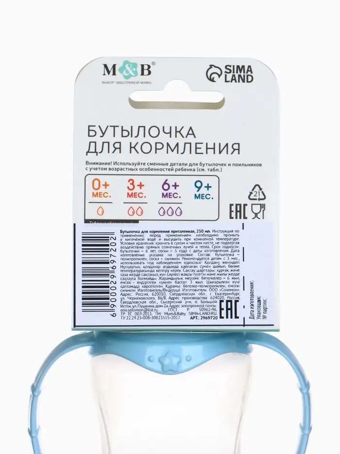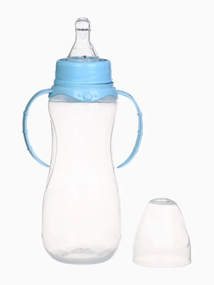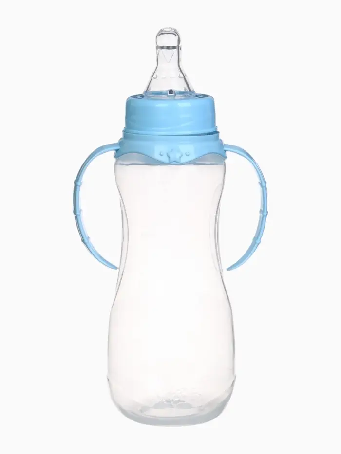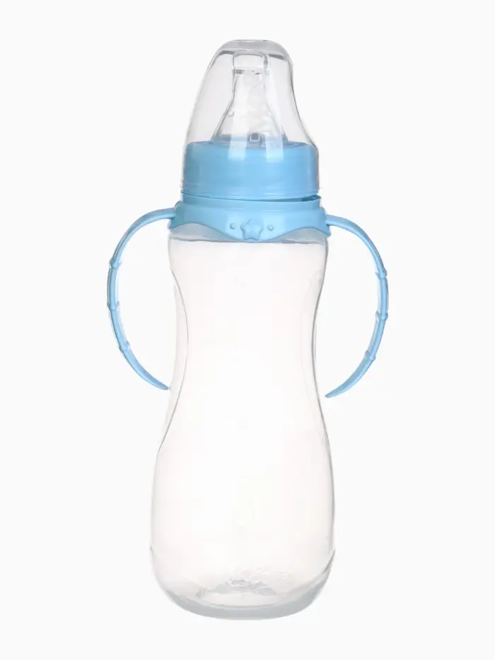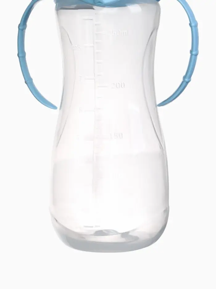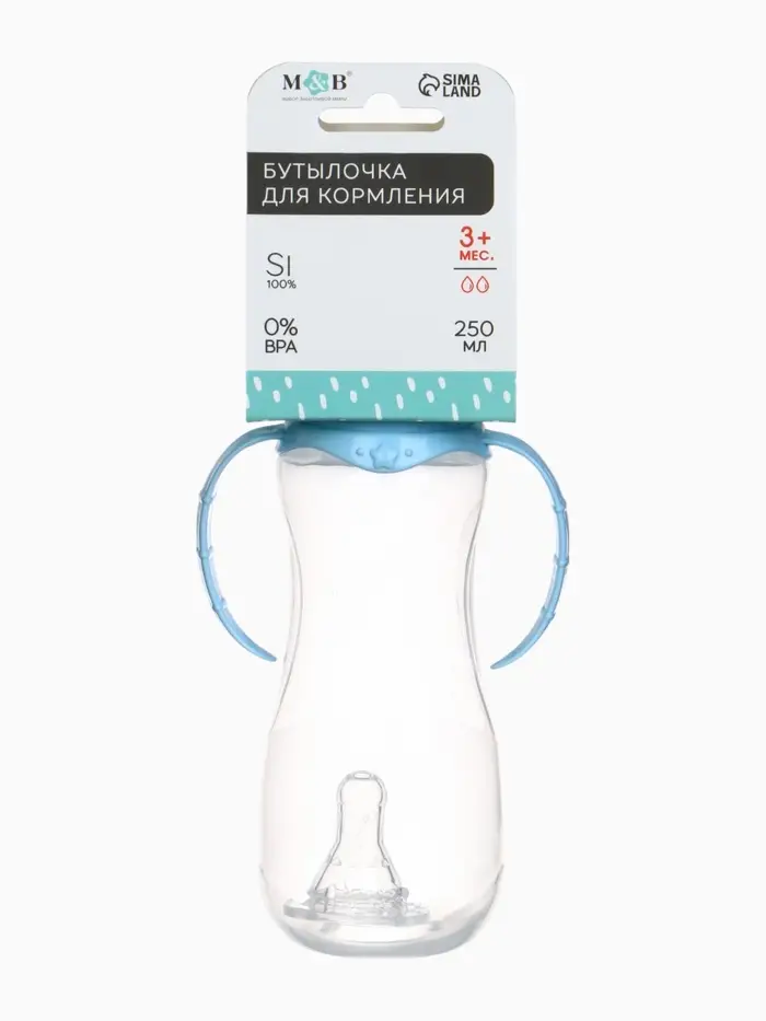 Бутылочка для кормления M&B, классическое горло, с ручками, от 3 мес., 250 мл., голубой МИКС