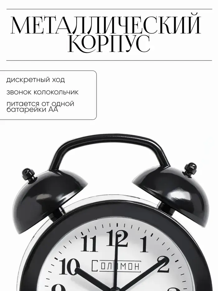 Часы - будильник настольные «Соломон», дискретный ход, 9.8×12 см, от батареек АА