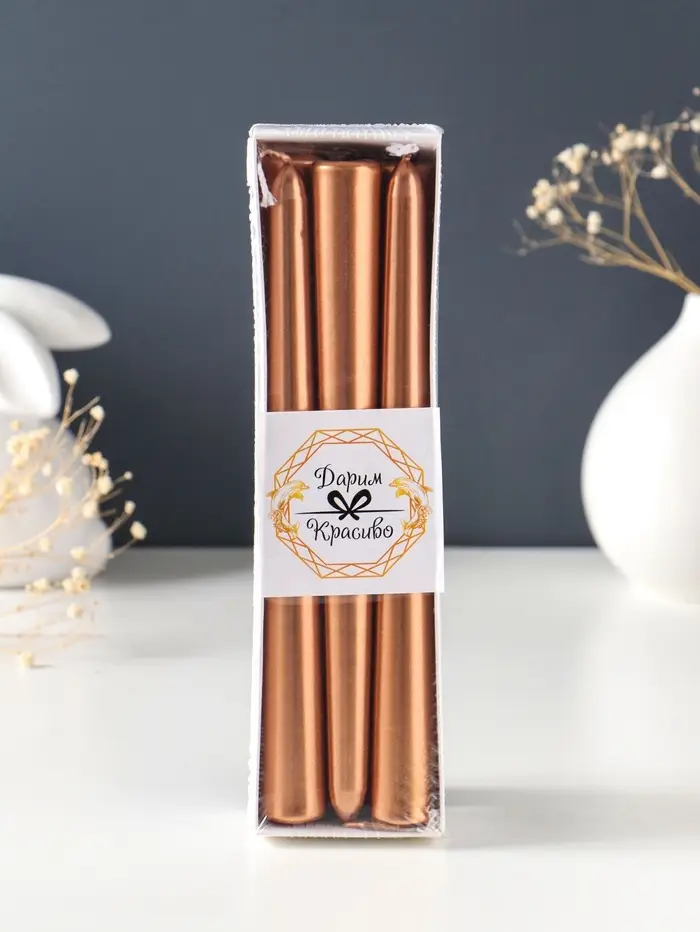 Набор свечей античных, 1.9×20 см, 6 шт., кофейно-золотой металлик