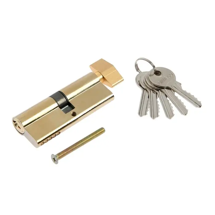 Цилиндровый механизм, 70 мм, с вертушкой, английский ключ, 5 ключей, цвет золото