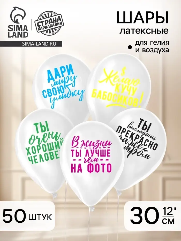 Воздушный шар латексный 12" «Хвалебные», 50 шт., МИКС
